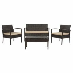 Budget 😀 Resin Wicker Patio Sets Safavieh Mattia Resin Wicker 4-Piece Conversation Set 💯