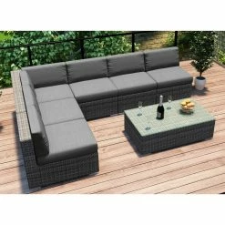 Resin Wicker Patio Sets Harmonia Living District 7 Piece Sectional Patio Conversation Set
