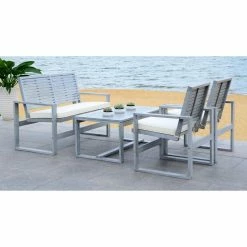 Best Sale ๐ฅฐ Wood Patio Sets Safavieh Rocklin Wood 4 Piece Outdoor Conversation Set ๐