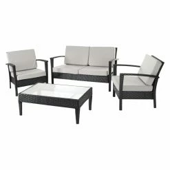 Discount ✨ Resin Wicker Patio Sets Safavieh Figeroa Wicker 4 Piece Outdoor Conversation Set 🛒