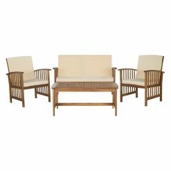 Deals ⭐ Wood Patio Sets Safavieh Burbank Acacia Wood 4 Piece Outdoor Conversation Set 🎁