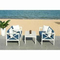 Coupon 🔔 Wood Patio Sets Safavieh Bradbury 4 Piece Outdoor Conversation Set ⭐