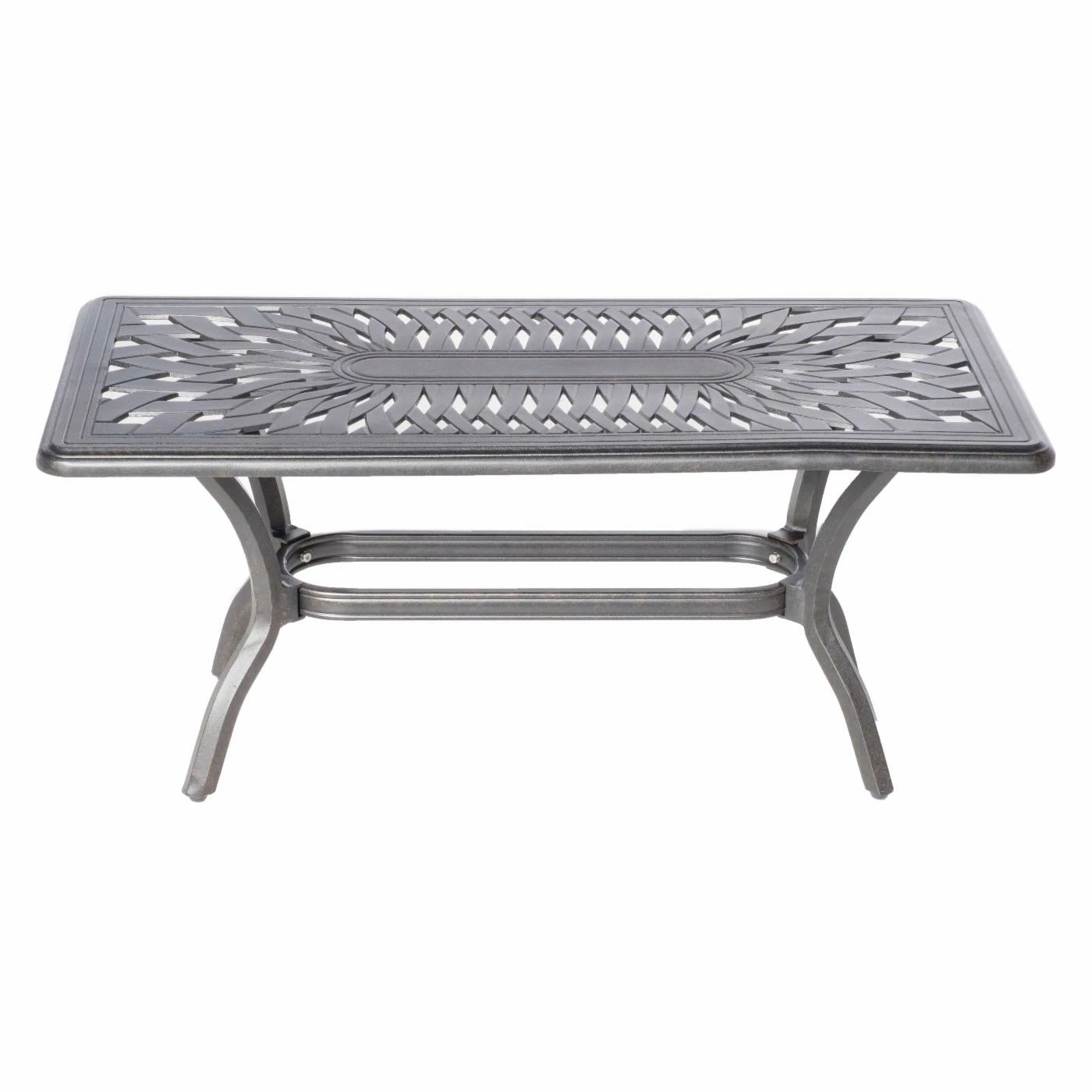- Cast-aluminum tabletop with ornate detailing