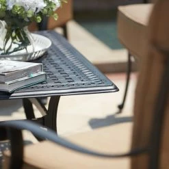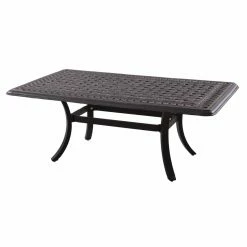 The traditional-styled Darlee Capri 4 Piece Aluminum Deep Seating 48 in. Table Patio Conversation Set features two high back chairs, one spacious sofa, and a rectangular coffee table. Thanks to the set’s overstuffed polyester cushions and deep seats, you can enjoy indoor comfort outdoors. Each piece is made from durable cast aluminum that’s easy to carry. Designed for the outdoors, this Capri outdoor furniture set dries quickly, won’t fade, and resists rusting. The nylon glides found on every leg protect your outdoor floors. It comes finished in a classic antique bronze paired with sesame-colored cushions.