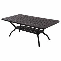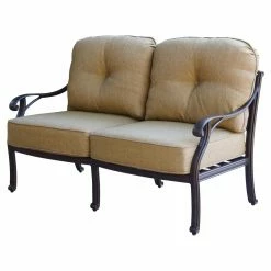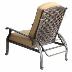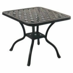 The Darlee Nassau 8 Piece Aluminum Deep Seating Patio Conversation Set has all the pieces you need to transform an empty space into a cozy, casual oasis that you’ll love to use every time you get the chance. This set includes a loveseat, sofa, club chair, and adjustable club chair. A low coffee table and three side tables add functionality that make this space easy to use. Each piece features a frame of cast aluminum with a powder-coated finish of antique bronze. The chairs offer spacious seating that’s complemented by thick, foam-filled cushions under all-weather covers of sesame-colored polyester. The basket-weave pattern is continued on each of the tabletops, and one even includes a removable lid that lifts off to reveal a stainless steel ice bucket.