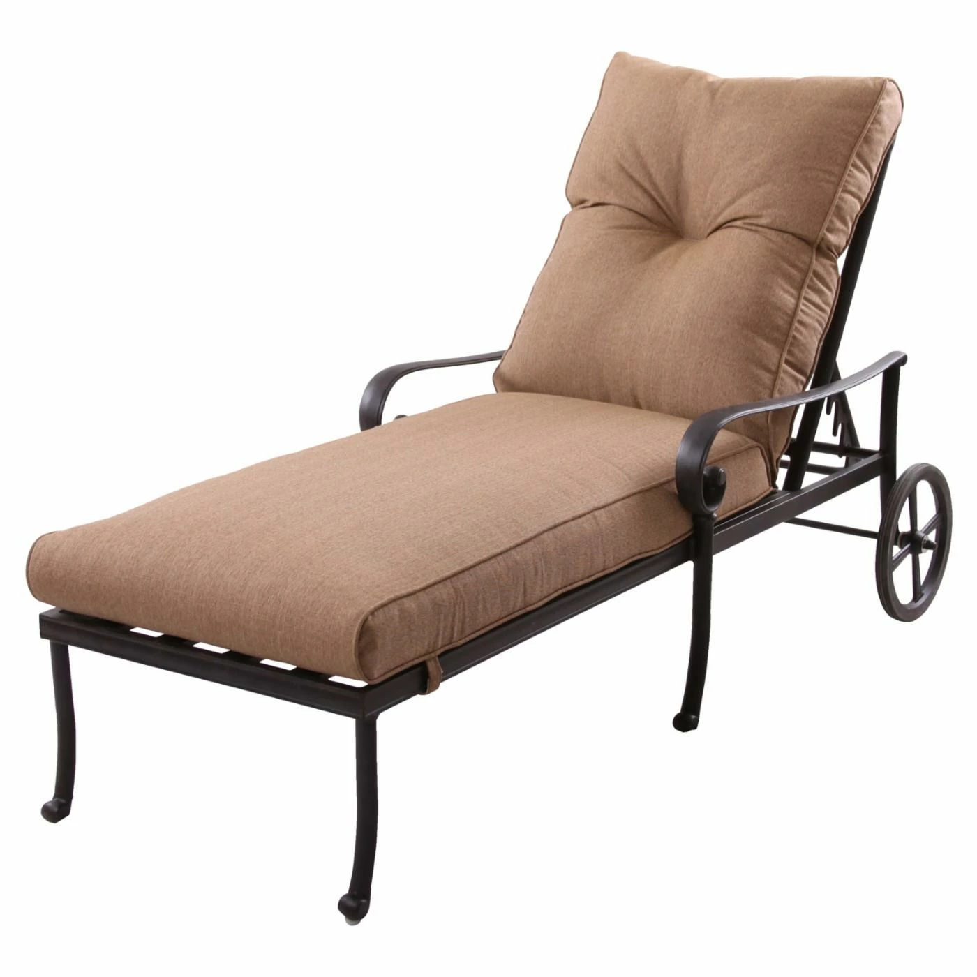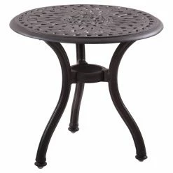 The Darlee Santa Anita 5 Piece Aluminum Lounge Patio Conversation Set is a great place to relax with two other sun-worshippers, or you can just use them all yourself and have dedicated spots for the morning, afternoon, and evening. This set includes three chaise lounges and two side tables. Each piece is hand-crafted using rust-proof, cast aluminum that’s finished in a shade of antique bronze. The wide lounges have adjustable, multi-position backrests that are ready to suit your level of relaxation. Large, rubber-covered wheels make them easy to move, and all-weather cushions make them oh-so comfortable. Each cushion is filled with dense foam and covered with all-weather polyester. A zippered closure makes the cushions easy to remove when it’s time to do a bit of cleaning. The side tables sport tops with an open, basket-weave pattern.