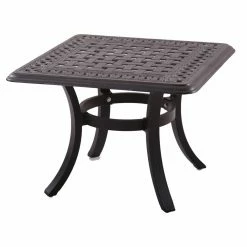 The Darlee Santa Anita Cast Aluminum 6 Piece Patio Deep Seating Conversation Set gives you deep, indoor-style comfort and style with a level of durability that your indoor furniture could only dream of. This full set has a sofa, loveseat, club chair, ottoman, coffee table, and a matching side table. Cast aluminum is the material that captures those classic curves, and the hand-applied finish of antique bronze gives it a warm, traditional color. The deep seat and tall, angled backs are padded with all-weather cushions that show off tufted stitching on their overstuffed shape. The high-quality fabric of 100 percent polyester is designed for outdoor use, and each cushion attaches with Velcro closures. A low coffee table and a matching side table add the function that will make this a high-traffic spot. Both tables have aluminum tops cast in an open design in a woven lattice pattern.