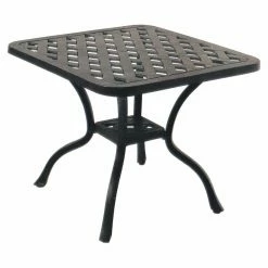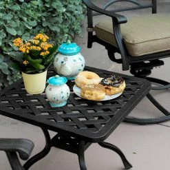 For a giant backyard or a small porch, the Darlee Ten Star 3 Piece Aluminum Square Patio Bistro Set is going to be a relaxing and pleasant way to spend some quality time outdoors. This set includes a pair of swivel-rocking chairs with thick cushions and a matching side table. Each piece features a frame that’s built from cast-aluminum with a powder-coated finish of antique bronze. The curved backrest of the chairs showcase a vintage-inspired pattern while the tabletop offers a classic basket-weave. The all-weather cushions are filled with dense foam that’s covered by your choice of available polyester fabrics.