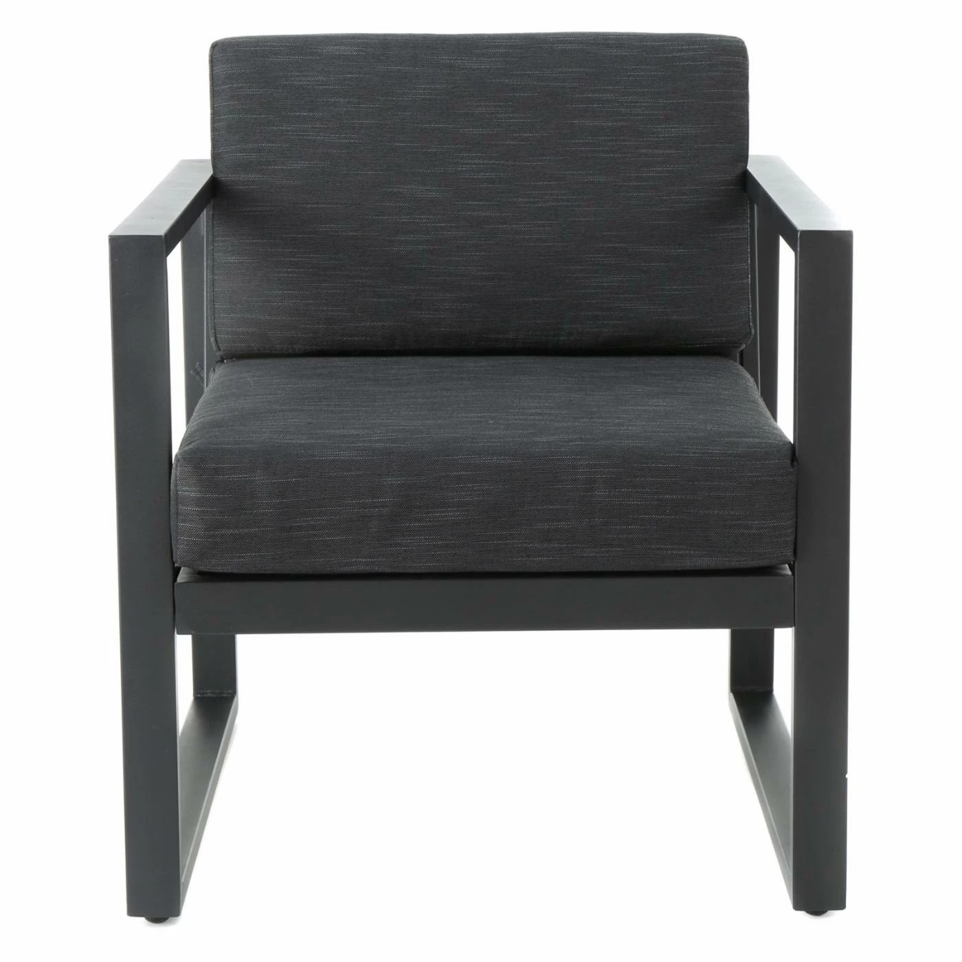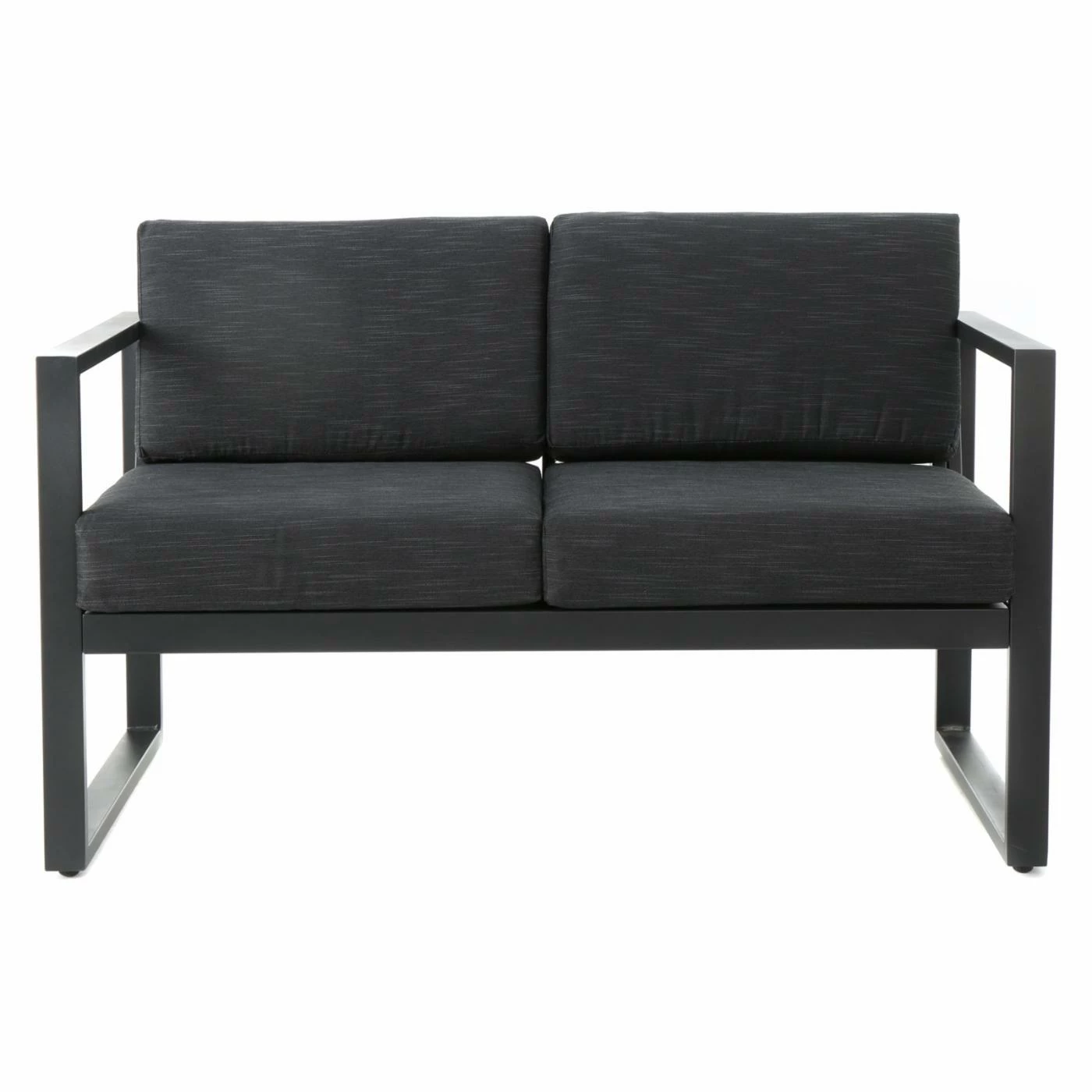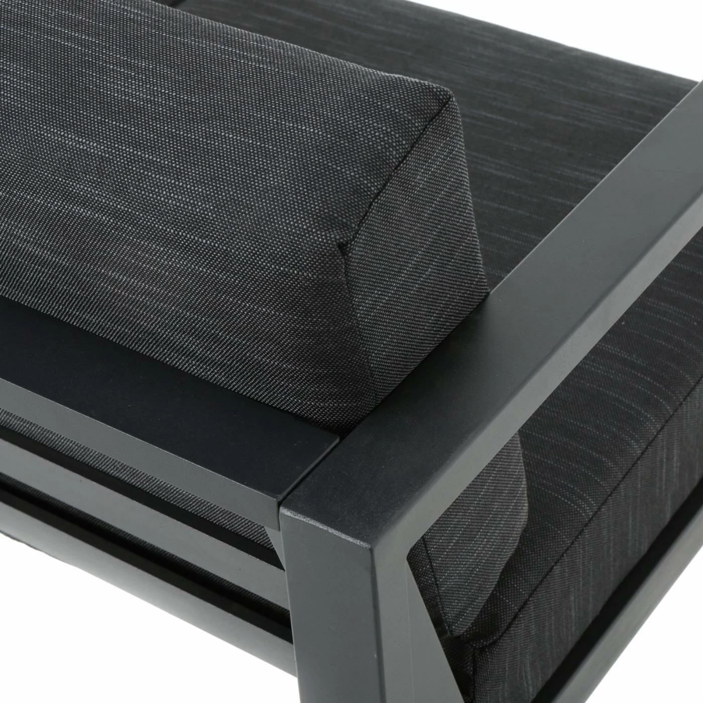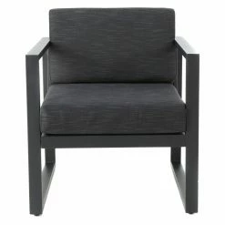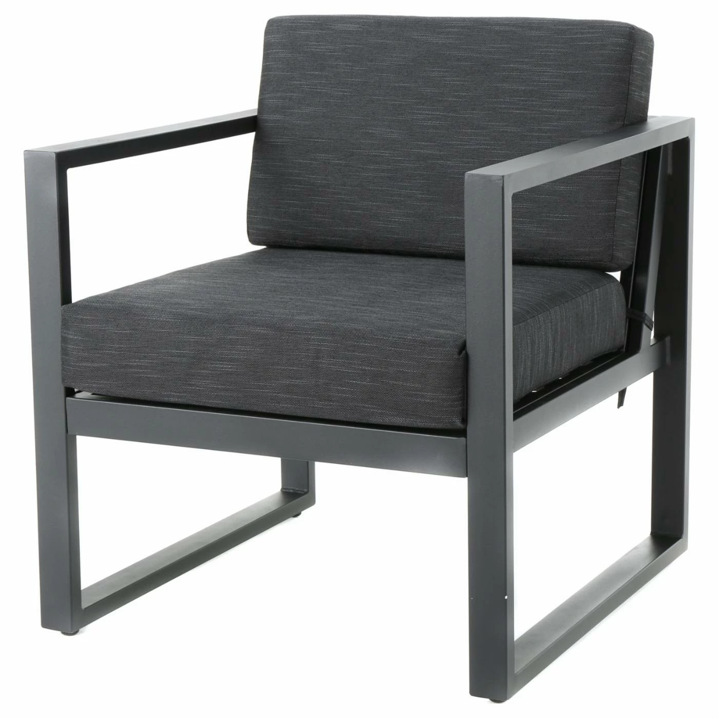 The modern cubed look of this HN Outdoor Maricopa 4 Piece Patio Chat Set adds chic appeal to your outdoor space. This patio chat set includes two cushioned chairs, a cushioned loveseat, and a coffee table. All are made of weather-resistant aluminum in a dark gray finish. Thick, dark gray cushions are made from waterproof polyester fabric. The coffee table has plenty of space for beverages, plates, and decorative touches.