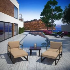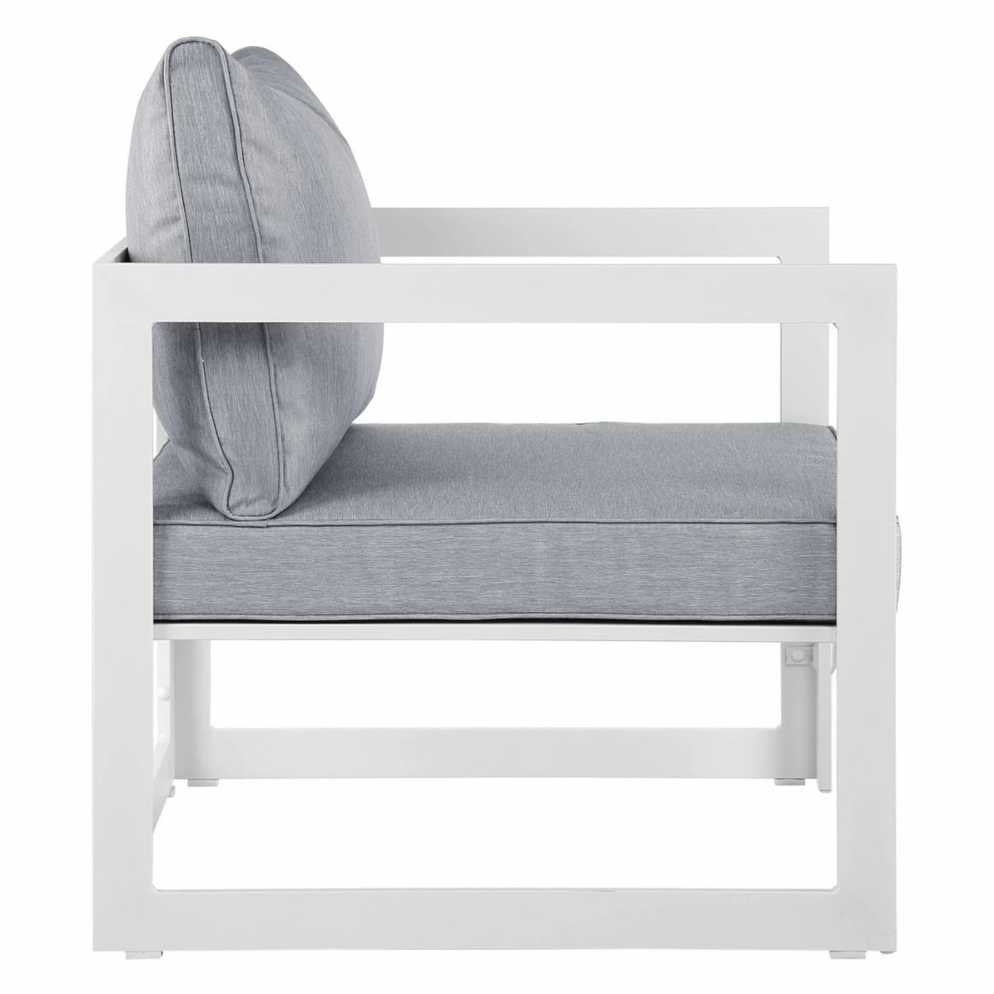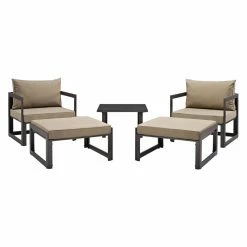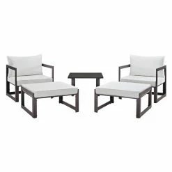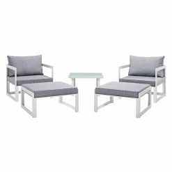 Afford your outdoor furniture set the ultimate in comfort thanks to the Modway Fortuna 5 Piece Aluminum Patio Sectional Sofa Set. Each piece in this set is constructed with a powder-coated aluminum frame that won’t rust, rot, or warp with continued outdoor exposure. The table is the perfect size for setting drinks and snacks, featuring a square top crafted from tempered glass. A matching ottoman is included for each chair, letting you and yours kick back and relax. Thick cushions top the chairs and ottomans, upholstered in machine-washable polyester.