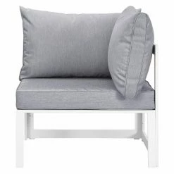 The Modway Fortuna 8 Piece Aluminum Patio Sectional Sofa Set lets your entire family relax in true comfort outdoors. This massive patio furniture set includes six matching chairs, an ottoman, and a side table, all crafted with powder-coated aluminum frames. The chairs (including four armless chairs and two corner armchairs) can be arranged and connected as you please. Thick foam-padded cushions crown the seats and ottoman, upholstered in weather-resistant, machine-washable polyester fabric covers. A square piece of tempered glass tops the table. Each piece is specifically designed for long-term outdoor use. Choose from the available finishes.