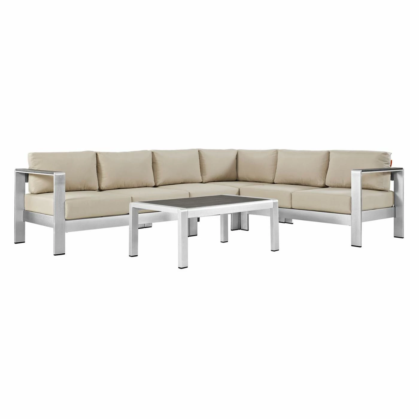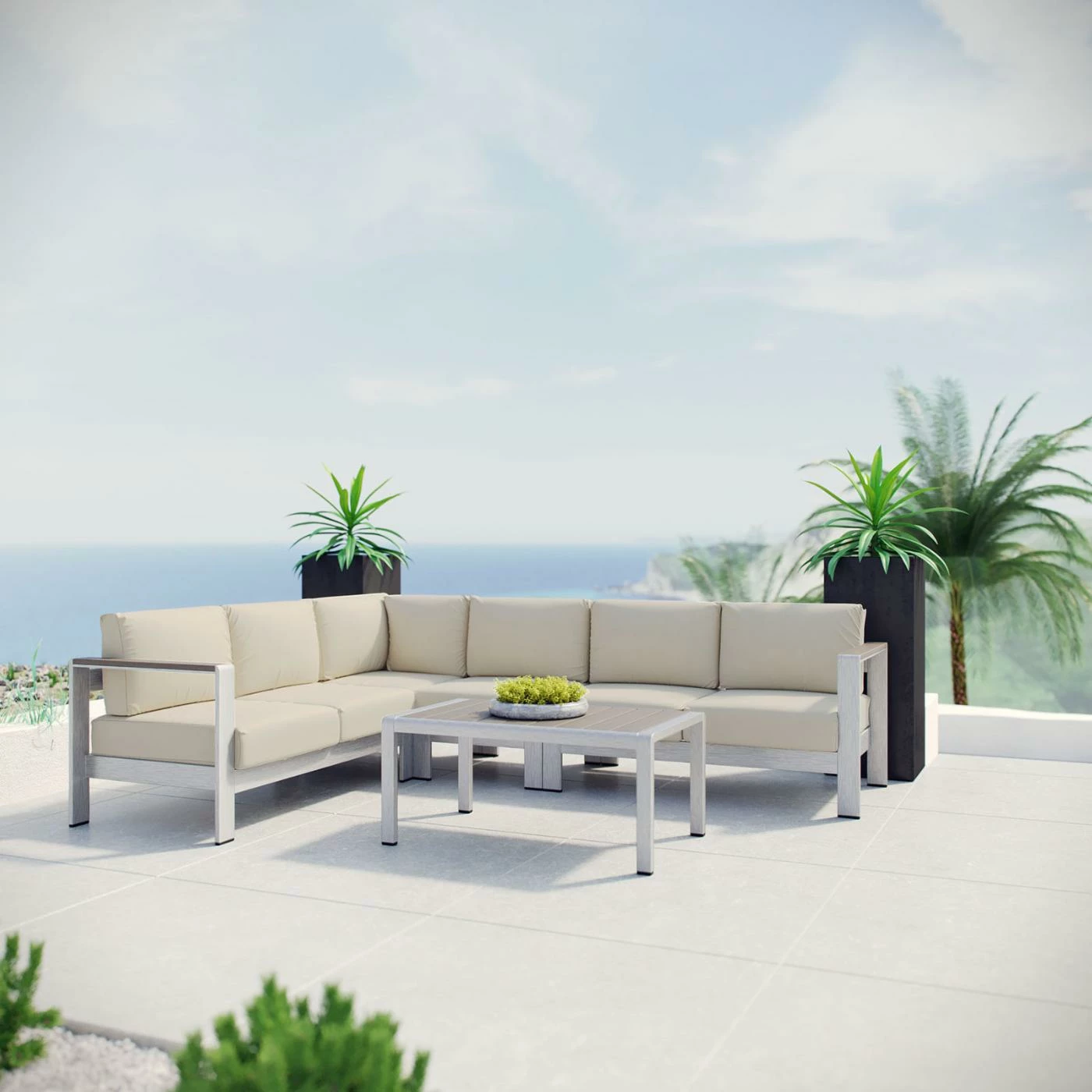 When we say Have a great weekend, we’re not just being droll. The Modway Shore Aluminum 5 Piece Commercial Patio Sectional Sofa Set has the potential to actually turn your weekends into the stuff of legend. This modular set can be arranged in various ways, depending on the layout of your space. Count on rugged aluminum frames to resist rust and the elements. Canvas cushion covers are weather-resistant and can be removed and machine washed whenever you get the urge to clean them.