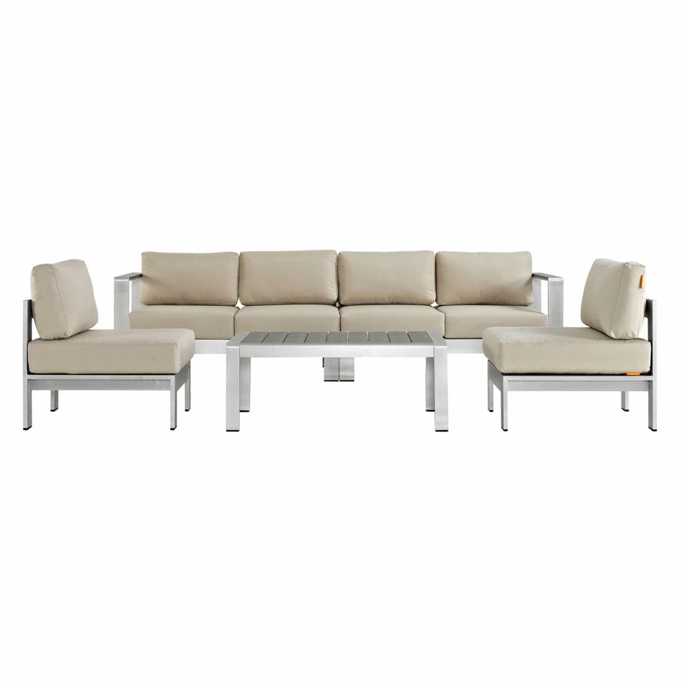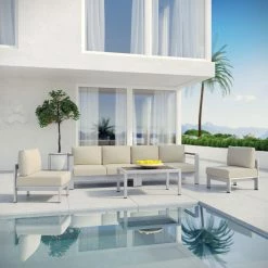 Carpe this diem and set up the Modway Shore Aluminum 5 Piece Patio Sectional Sofa Set to make the most of outdoor lounging season. These pieces are crafted with anodized aluminum frames, so they’re ready for anything, including salt spray or pool chemicals. With several color options, you can choose one that works for you. Canvas-like fabric is extremely durable and moisture-resistant. Covers are removable and machine washable for ease. The coffee table has gray planks of faux wood forming its heat- and weather-resistant top.