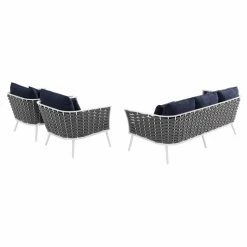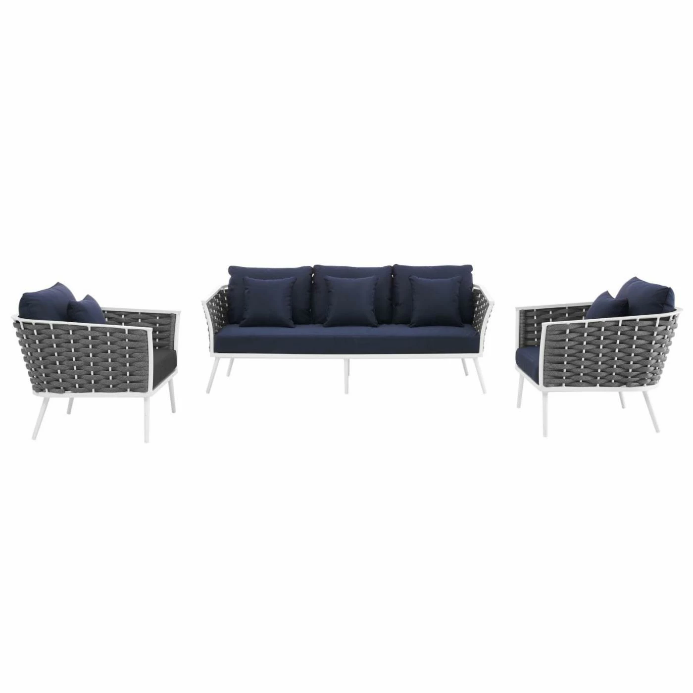 Throw the outdoor party of the season with the Modway Stance Aluminum 3 Piece Patio Conversation Sofa Set. This conversation set includes two chairs and your choice of available configuration options, so you’ll be able to find the seat that best fits into your backyard oasis. Each piece includes a plush seat and back cushion and a matching pillow for comfort. Choose from the available cushion and pillow colors to find the option that best fits with your current outdoor style. The aluminum frames in white feature a polyester fabric weaving in gray.