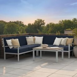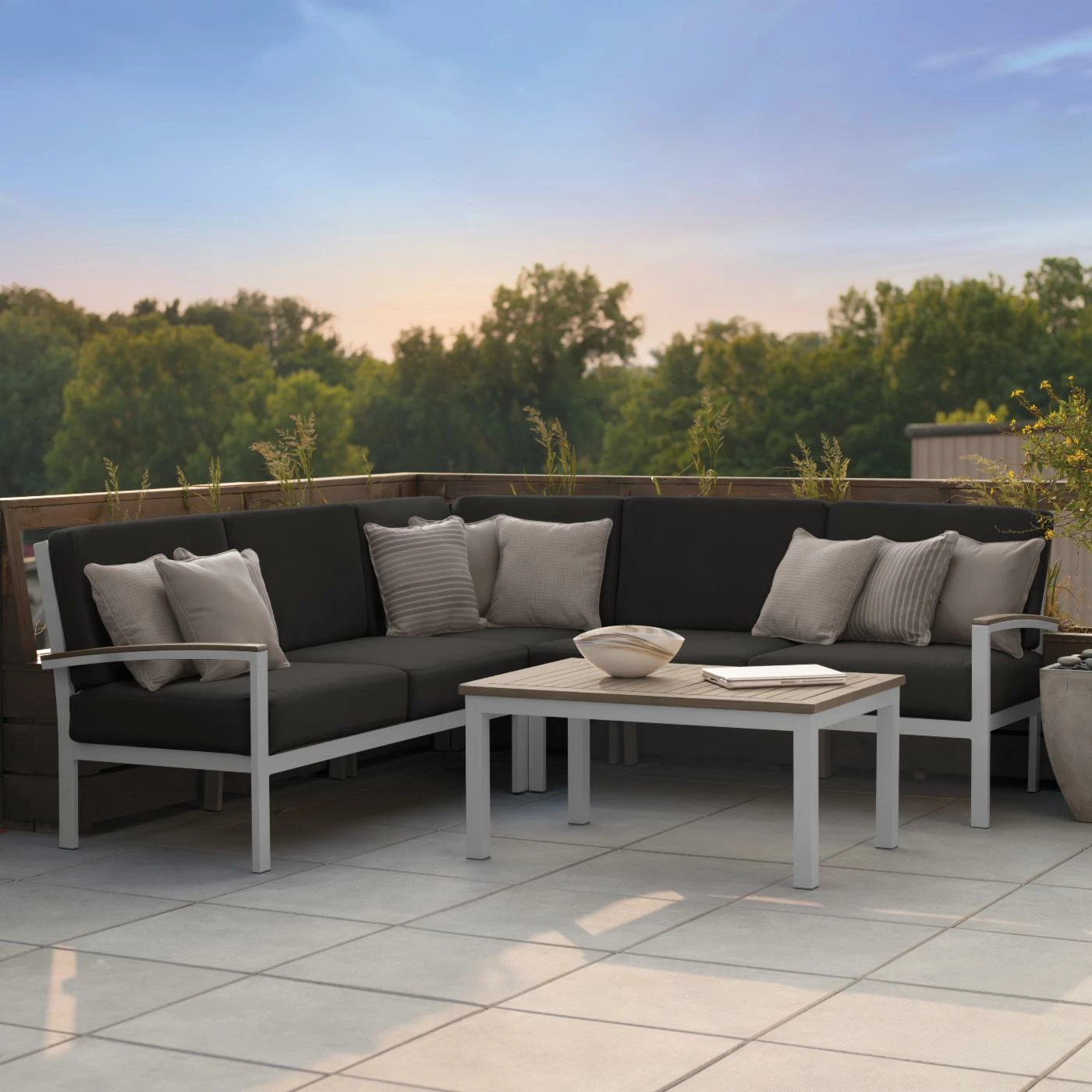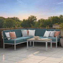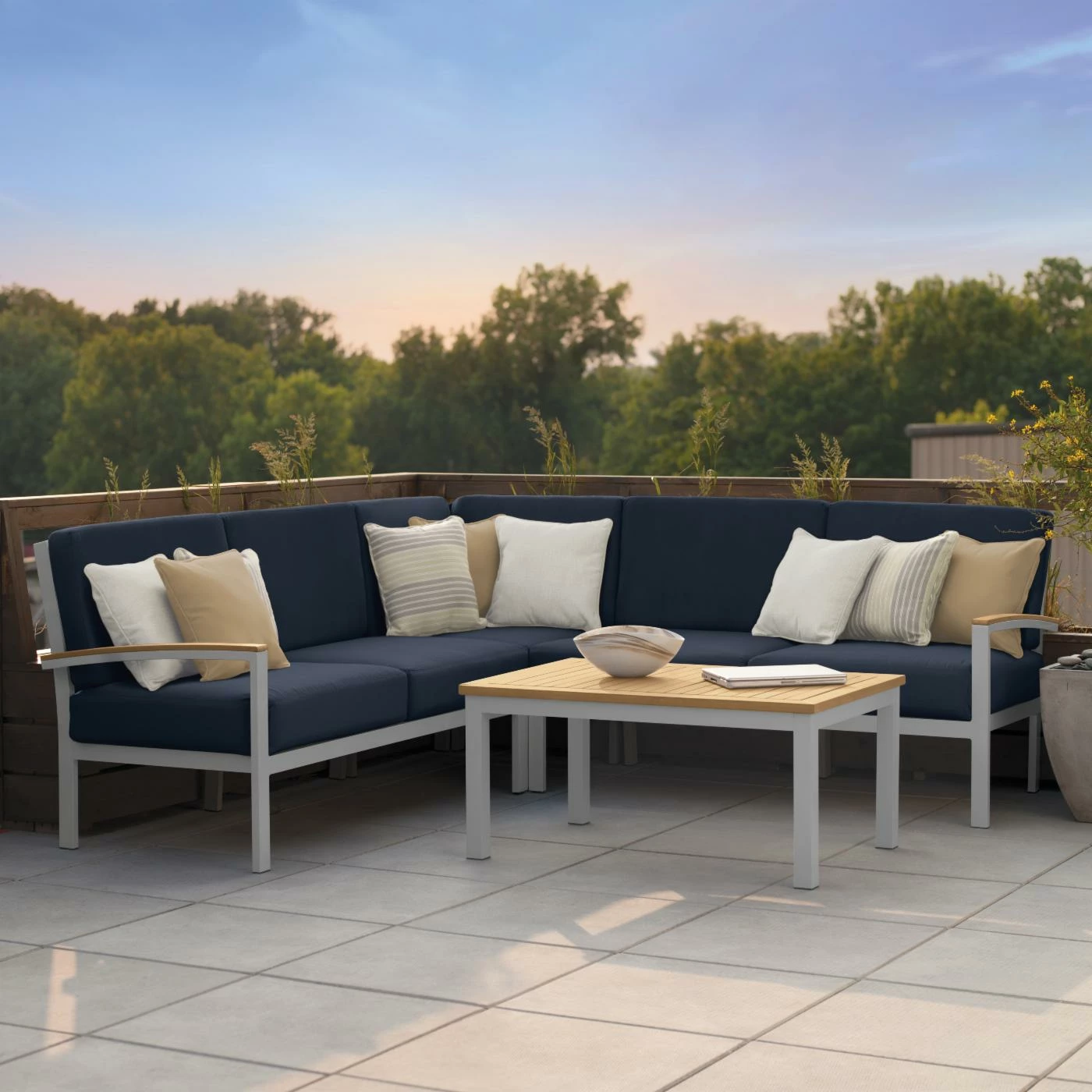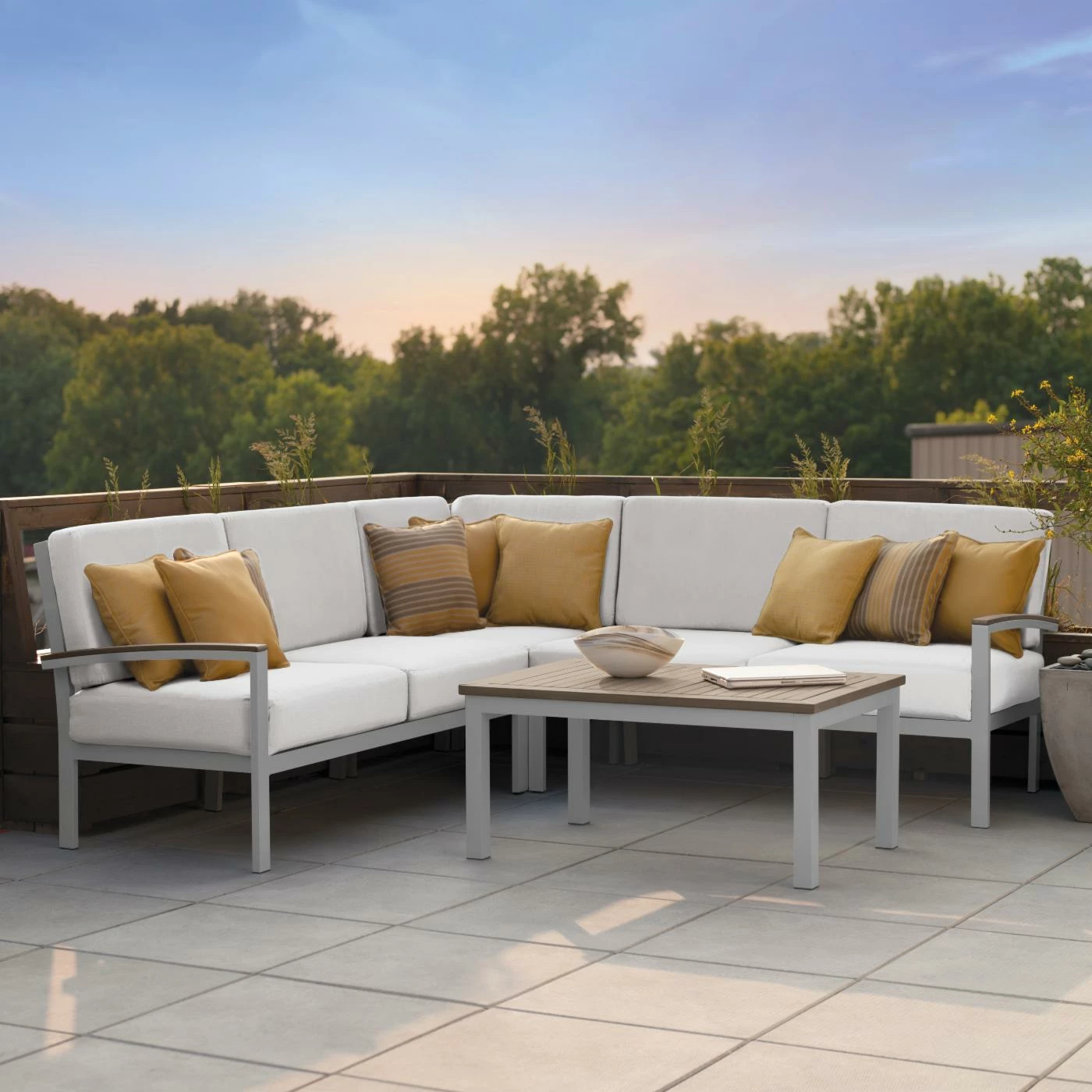 From its summery style to its premium materials, the Oxford Garden Travira Tekwood and Aluminum 4 Piece Loveseat and Coffee Table Chat Set will be a welcome addition to your outdoor living area. Including two loveseats, a corner seat, and coffee table, this chat set can seat up to five. The frames are crafted of lightweight, rust-proof aluminum with a protective powder coat flint, while both the arms and coffee table’s top are made of Tekwood, a wood alternative derived from polystyrene that offers the look of wood without the maintenance. The water-resistant foam cushions come complete with solution-dyed acrylic covers, while leg end caps help prevent your floors from scuffing and scratching. You’ll get to choose from available frame finishes and cushion colors, so it’s easy to create a custom look that’s just right for your patio or porch – and summer.