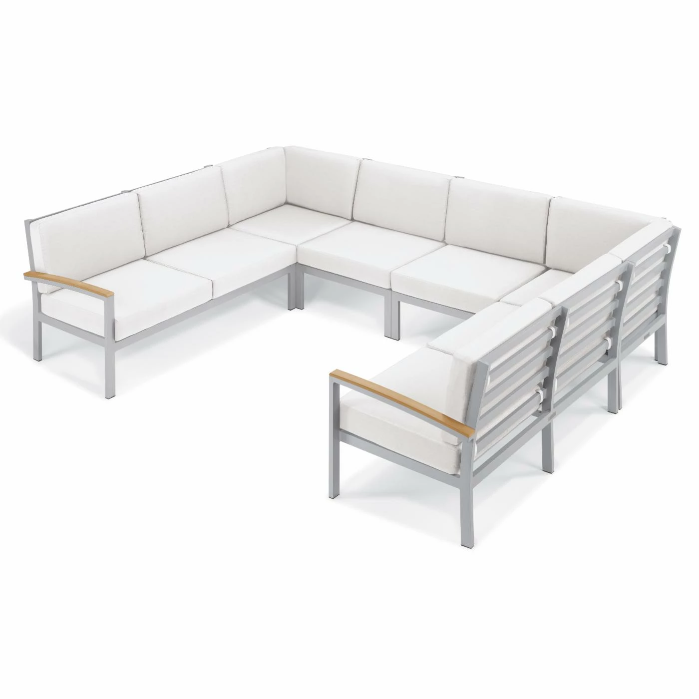 Great patio gatherings start with great furniture like the Oxford Garden Travira Tekwood and Aluminum 6 Piece Loveseat Chat Set. There’s room for up to eight of your favorite people with this sectional set, which is crafted of rust-resistant, powder coat flint aluminum frames with Tekwood arms. Tekwood, derived from polystyrene, offers the look of wood without the worry of maintenance. The cushions are crafted of water-resistant foam with solution-dyed acrylic cushion covers, and you’ll get to choose from available finish and cushion color options.
