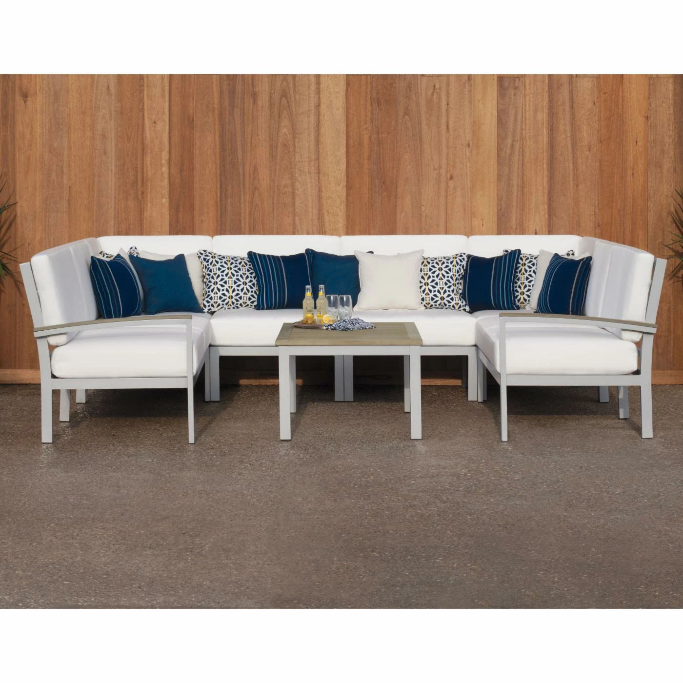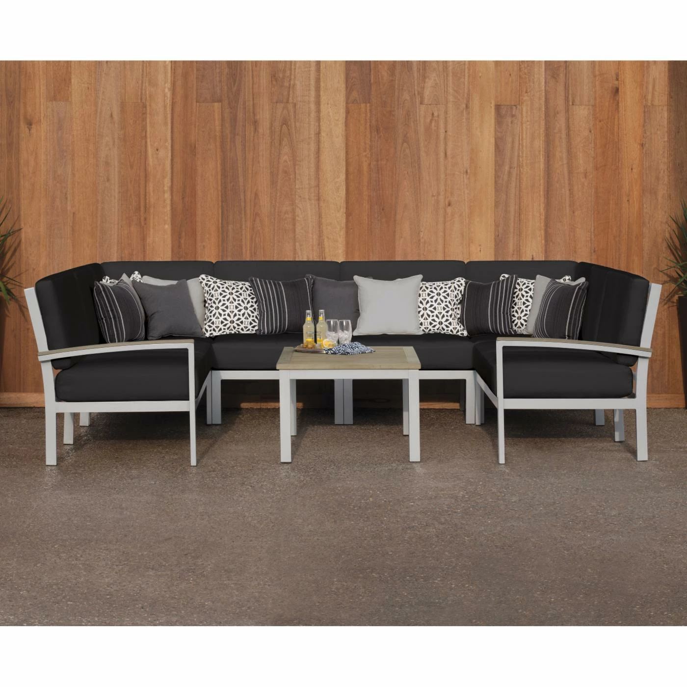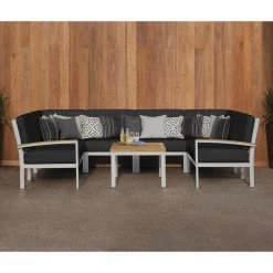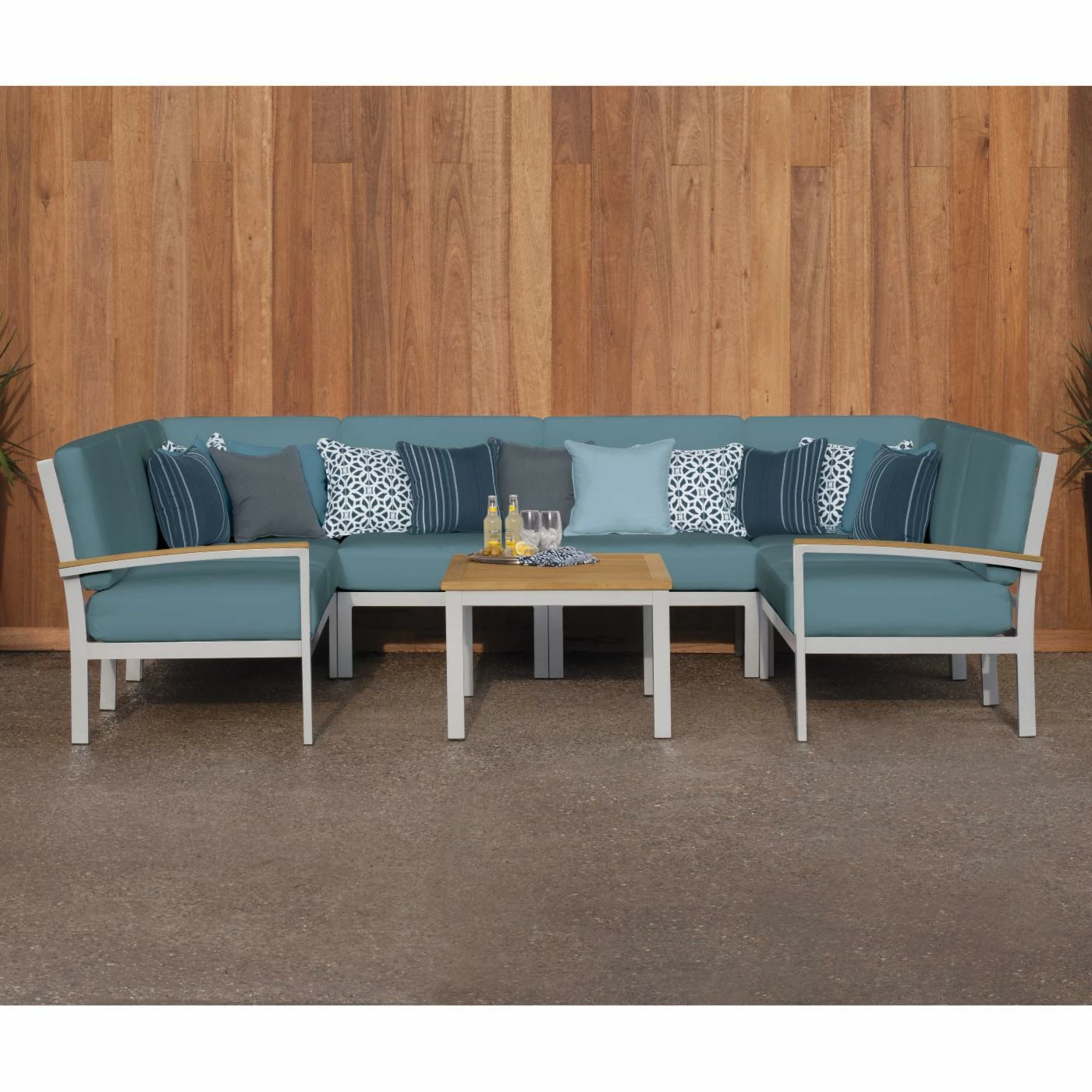 With the Oxford Travira Tekwood and Aluminum 7 Piece Loveseat and Table Chat Set in your outdoor living area, your indoor living room furniture is bound to get a bit jealous. After all, this set offers space for up to eight of your favorite people and is built with the best in mind. Rust-proof, powder coat flint aluminum frames feature end caps to protect floors from scuffing, while the coffee table top and arms are crafted of Tekwood. Derived from polystyrene, Tekwood offers the look of wood without the fuss of maintenance. Cushions are crafted of water-resistant foam, complete with solution-dyed acrylic cushion covers. Choose from available finishes and cushion colors for a custom look.