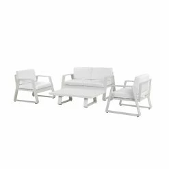 Looking for something different and fresh for your outdoor space? Featuring a beautiful symmetrical design, the Pangea Home Air 4 Piece Sofa Conversation Set is not your ordinary patio sofa set. The Air 4 Piece set is made from an all-aluminum frame that will not rust and has a modern design that you will love. Easy assembly and comfortable cushions make this 4-piece set a no brainer to purchase.