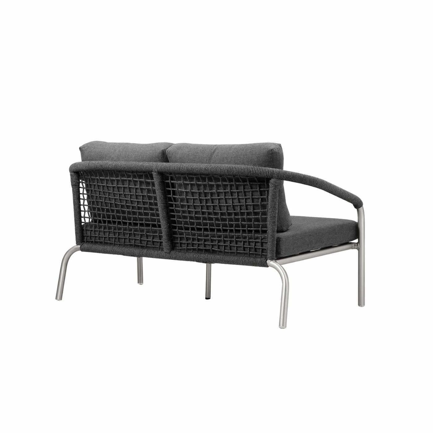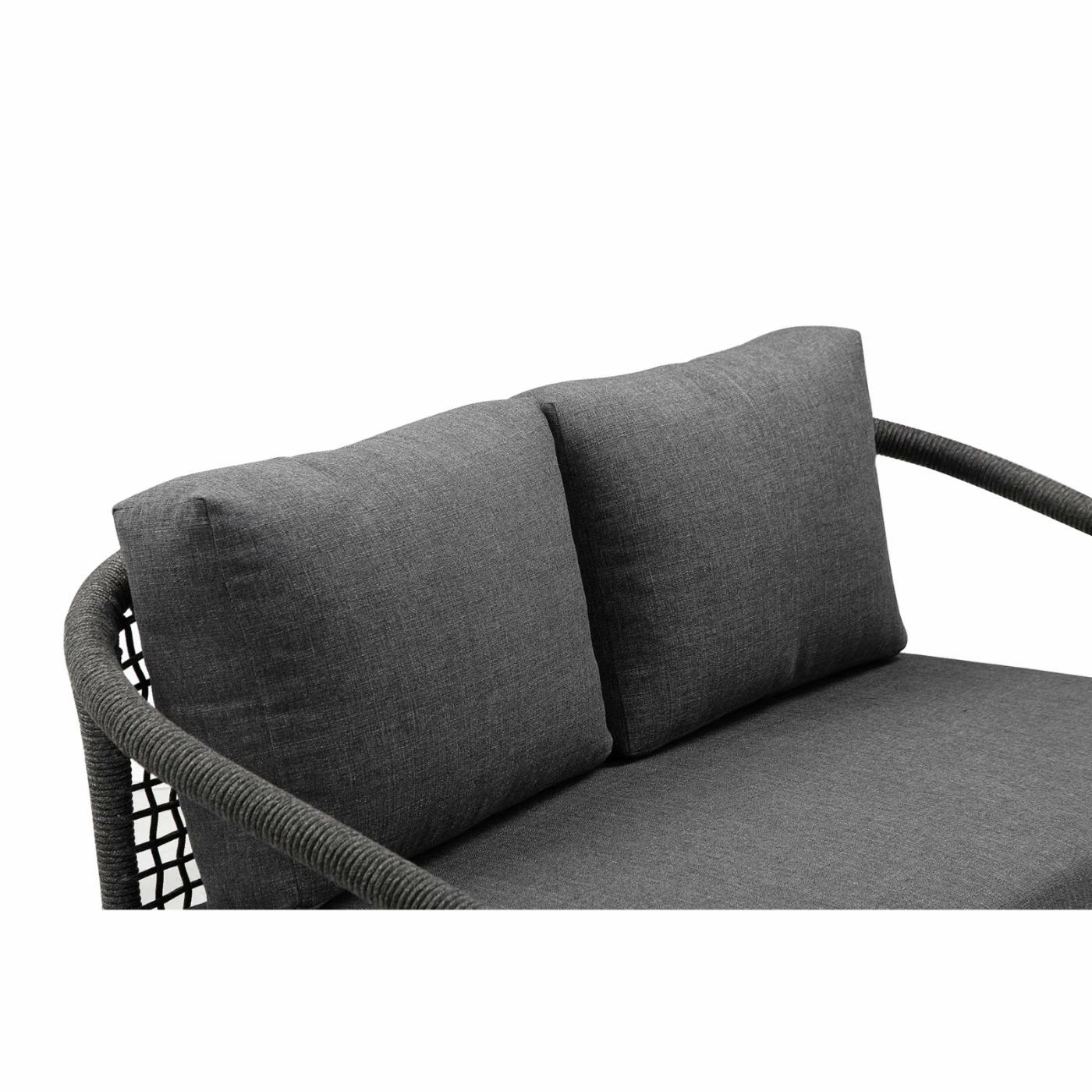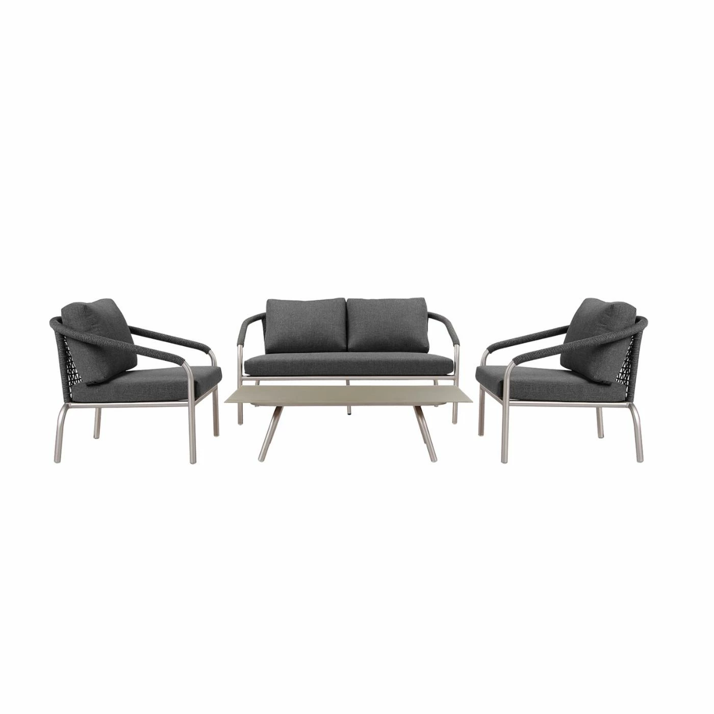 The Pangea Home Chelsea 4 Piece Patio Conversation Set is a beautiful combination of rope and aluminum. Its aluminum frame will never rust with rope is made to be used outdoor and is similar to what you will find on yachts. Cushion fabrics are removeable and washable. You will love this set for its low maintenance and built to last materials! Set includes 2 arm chairs, 1 sofa, 1 coffee table.