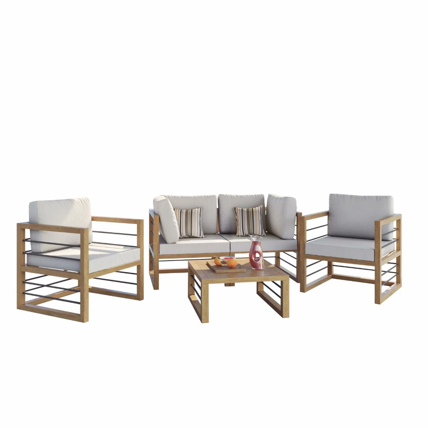 - Includes 2 chairs, 2 sofas & ottoman