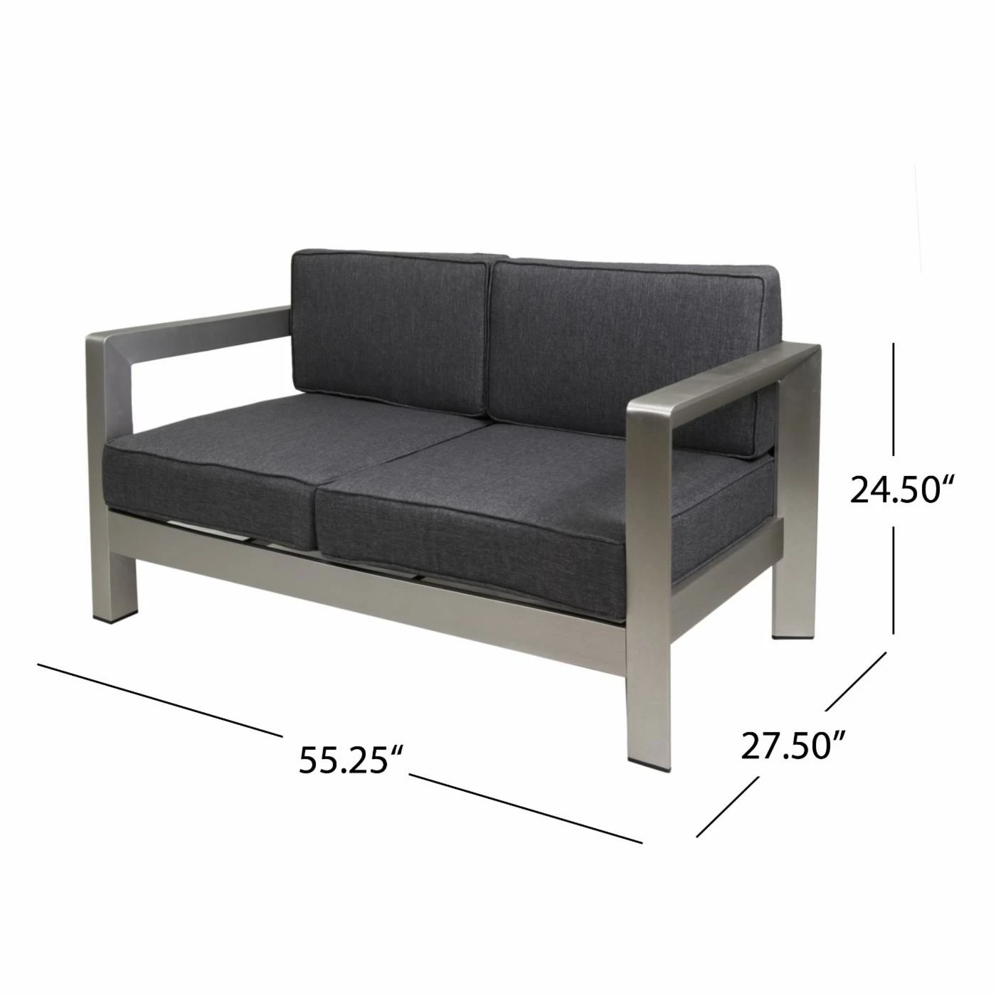 It doesn’t take a lot to revitalize your outdoor living space – this loveseat and coffee table combination will make a powerful statement in any patio area or poolside deck, allowing you to update the look of your yard conveniently and affordably. These pieces are not only modern and chic, but also incredibly hardy in the face of the outdoor elements; the included cushions are weather-resistant, and their aluminum frames are anodized, enhancing this pair’s resistance to rust, corrosion, and tarnish.
