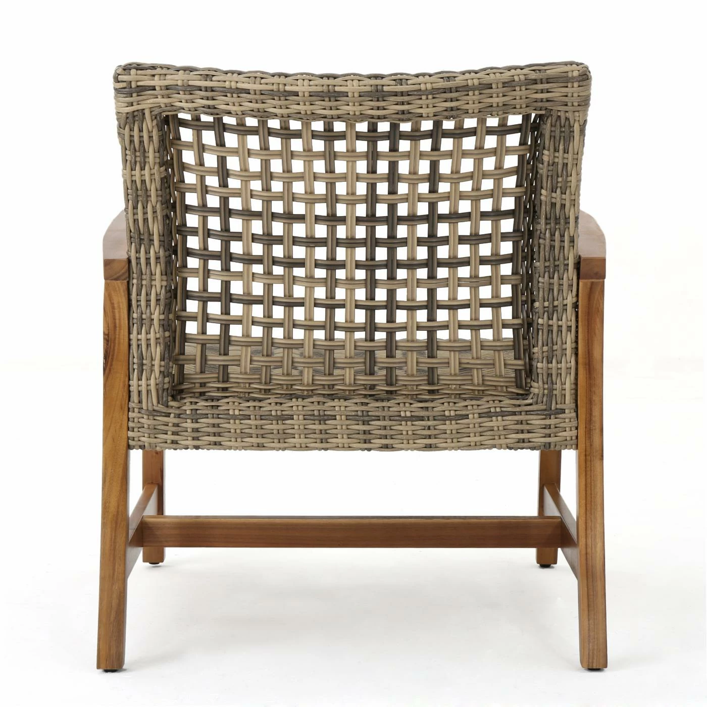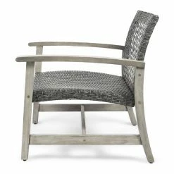 Break out a refreshing drink and enjoy a gorgeous sunset with a loved one on our cozy chair and side table set. This lovely outdoor set features beautiful, handwoven wicker seating that provides a classic, homey look for any patio or backyard. Featuring a two-seat arrangement, this set is a cozy accommodation that maintains a reliable structure with its naturally durable acacia wood frame. This weather-resistant material leaves less time for hassle and more time for enjoyment with the ones you love.