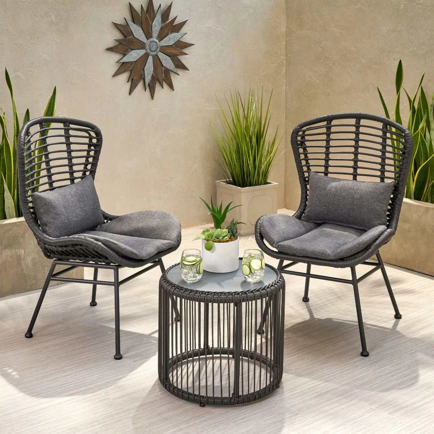 Discount ๐ Best Selling Home Decor Resin Wicker Patio Sets Caedon Outdoor Wicker And Glass 2 Seater Chat Set With Cushion – Gray And Black ๐