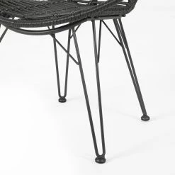 Outfit your backyard or patio with an atmosphere of sleek design and incredible textures. Our chat set perfectly blends rattan and metal to emphasize its superior excellence and to bring your outdoor space together with a flourish. This set features hairpin legs and tempered glass, providing a stylish flair to your outdoor space while offering a minimalistic yet durable structure. With a wrapped rattan design and cozy basket shape chairs, this set brings a modern twist to a boho look, making this ideal for any style of decor.;