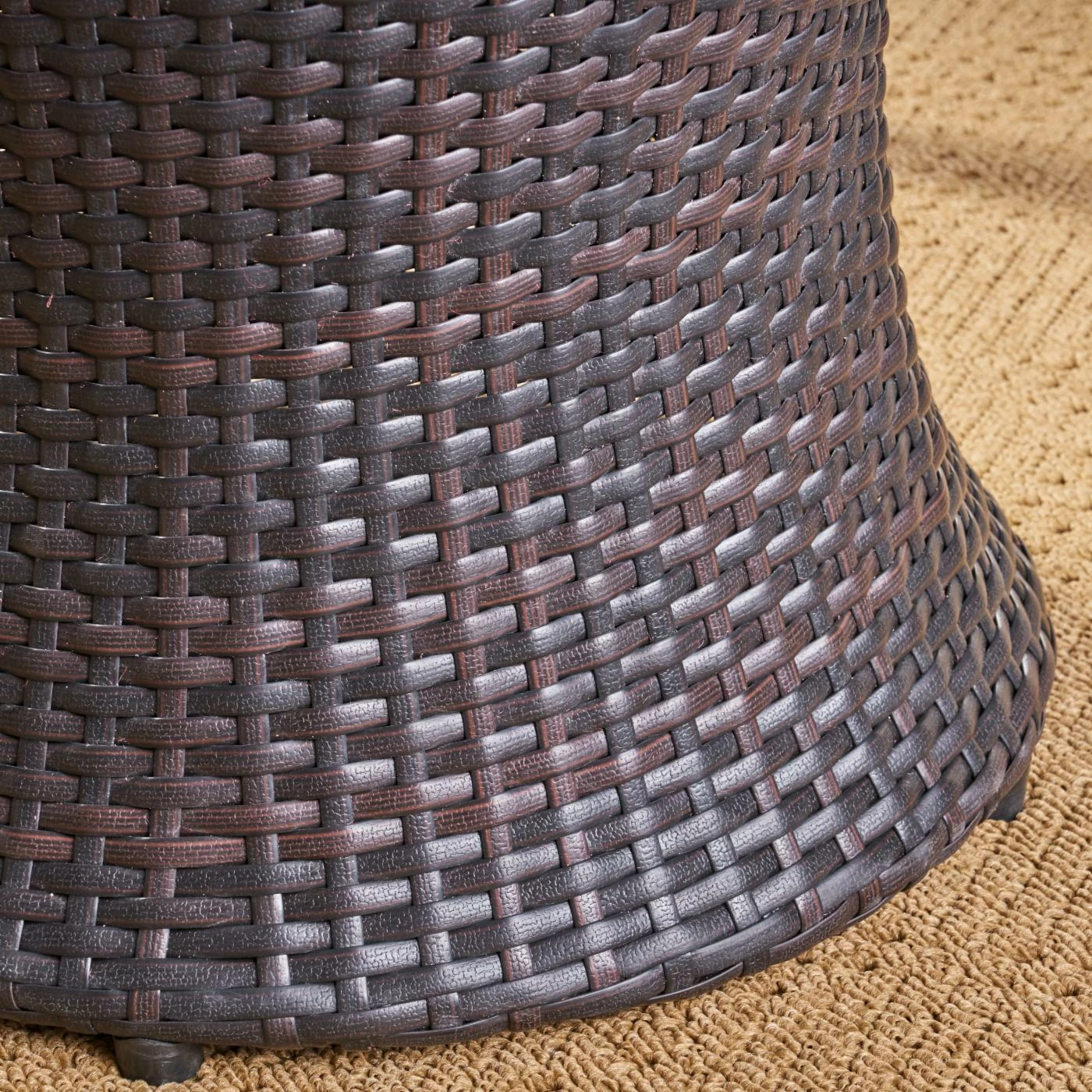 Enjoy the outdoors this year with this 3-piece chat set and relax in style. Constructed with sturdy wicker, iron and water resistant cushions, these items are built to endure all seasons. Great for savoring the sun poolside or intimate conversation over a glass of wine, this set will help create memories for years to come.