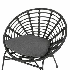Turn your backyard or patio space into your new favorite place to relax with the help of our delightful two-seater chat set with side table. This set perfectly pairs the natural looks of wood and rattan wrapping with sleek, black metal to bring your outdoor space together with an effortlessly stylish flair. With an acacia wood side table and basket chairs made with thin angled frames and rattan finish, our chat set is crafted to superior excellence, offering assuring durability, ultimate comfort, and charming design.;