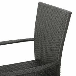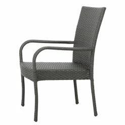 This outdoor chat set has been uniquely paired for your convenience. With two stacking wicker chairs, this set is both unique and comfortable. The stacking feature of the chairs allows you to easily store these chairs and the table in one place when you need this set out of the way. The table is made with sturdy wicker that is great for outdoor use and will be perfect for anything you want to use it for.