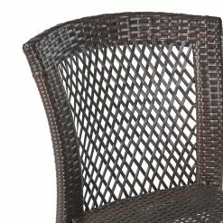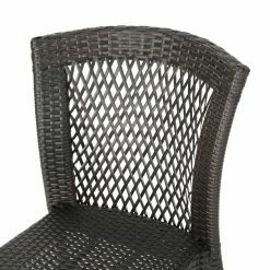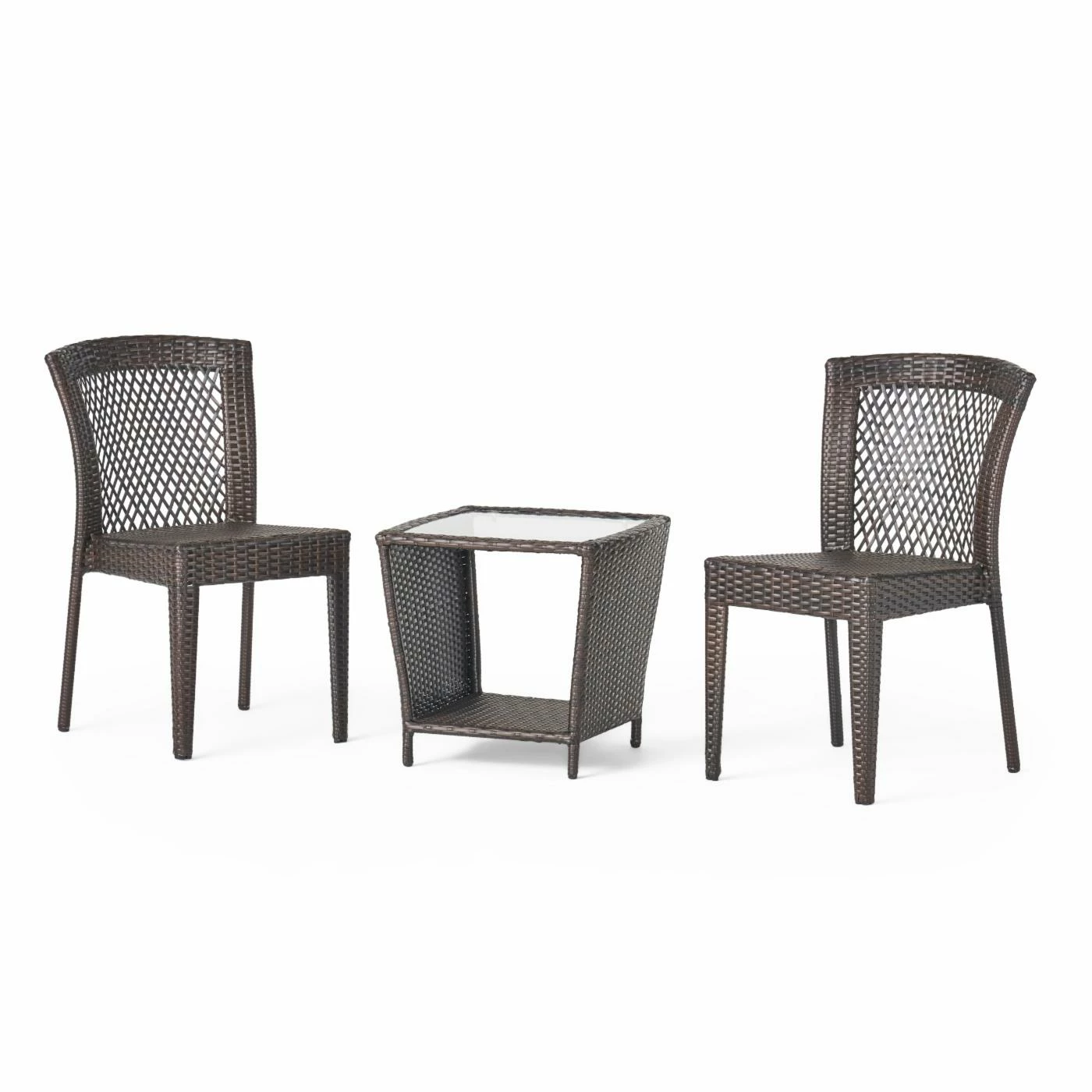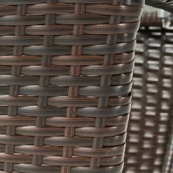This outdoor chat set has been uniquely paired for your convenience. With two stacking wicker chairs, this set is both unique and comfortable. The stacking feature of the chairs allows you to easily store these chairs and the table in one place when you need this set out of the way. The table is made with sturdy wicker that is great for outdoor use and will be perfect for anything you want to use it for.