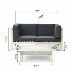 Give your guests a five-star experience whenever they stop by your place for a good time – this modular sectional loveseat set for porch, patio, or deck comes included with a stylish square coffee table, perfect to share food or drinks over. Each item in this chic assemblage supports you from below with a solid, slatted acacia wood frame and boasts thick outdoor cushions comfortable enough to socialize on all night long. Configure the seating components around your current outdoor furniture collection or place them right next to one another to form a conventional loveseat arrangement.
