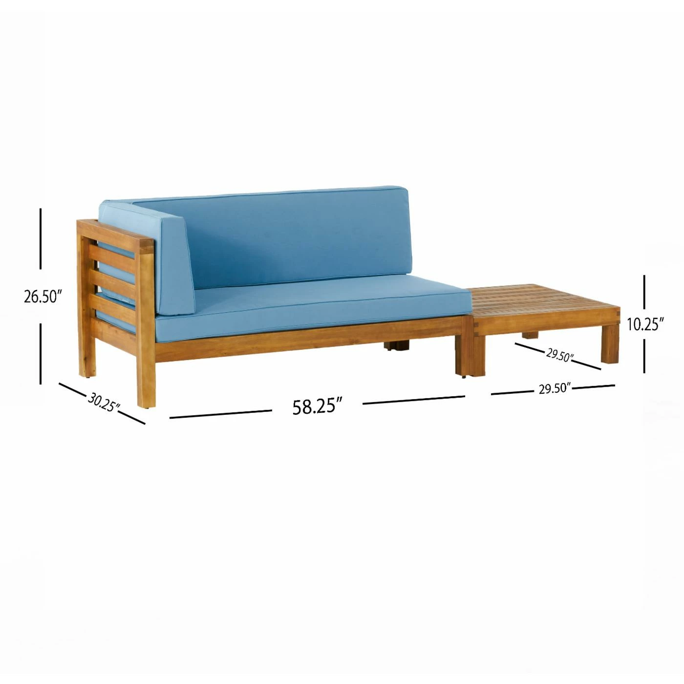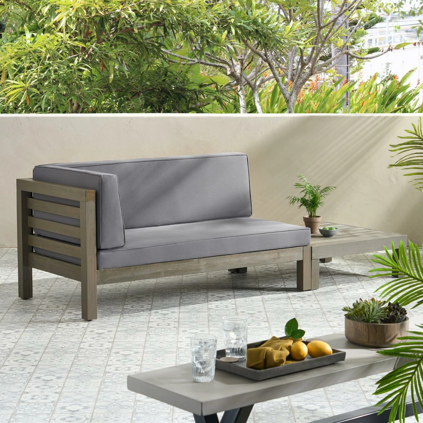 Set a drink or two within arm’s reach and enjoy a conversation with a friend or stretch out by yourself under the warm sunshine. Our exquisite left-armed loveseat and coffee table set brings together rich acacia wood and slat paneling to create a breezy and comfortable space for your patio or backyard space. Finished with plush outdoor cushions and a slat panel coffee table, this set will have no problem blending into your outdoor decor with its modern style and incredible durability.