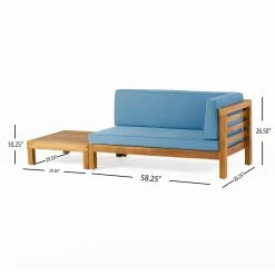 Comfortable home seating is essential for your outdoor space, so why not choose something that is brimming with rustic yet modern style? Our exquisite right-armed loveseat and coffee table set brings together rich acacia wood and slat paneling to create a breezy and comfortable space for your patio or backyard space. Finished with plush outdoor cushions and a slat panel coffee table, this set will have no problem blending into your outdoor decor with its modern style and incredible durability.