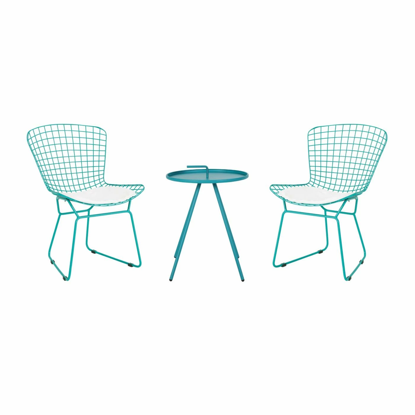 Bask under the summer sun with a chilled drink and good company by using our charming chat set. This set is the perfect addition for any patio or backyard space to have an intimate conversation with a loved one or just to relax. Not only is this incredibly comfortable due to the chairโs breathable structure but it is also uniquely stylish. Featuring removable water-resistant cushions and a steel side table, this set is the answer to all of your lounging needs.;
