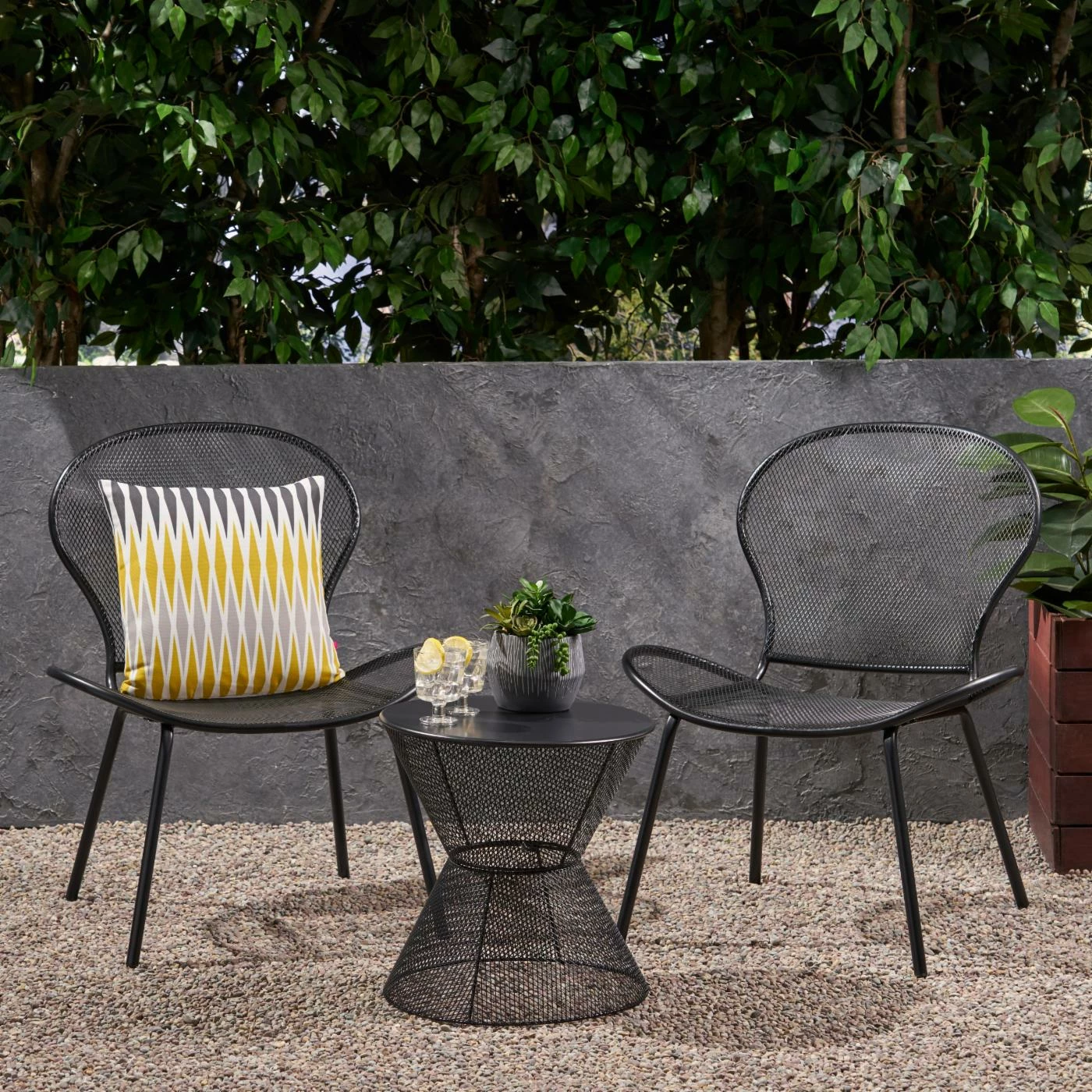 Your backyard space is about to be transformed by lively colors and playful design that will leave you in awe. Featuring a breezy mesh look and rounded silhouette, our chat set provides a timeless style to your home while providing ultimate comfort. Consisting of sleek iron frames, this charming set is made to last with its intricate, durable structure and refreshing finish. As the perfect backyard companion, this chat set allows you to relax and enjoy the summer sun.