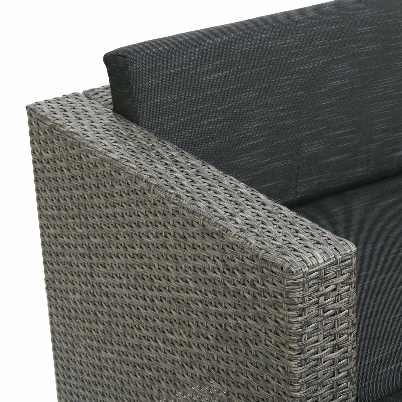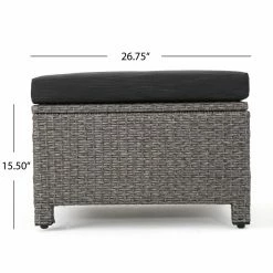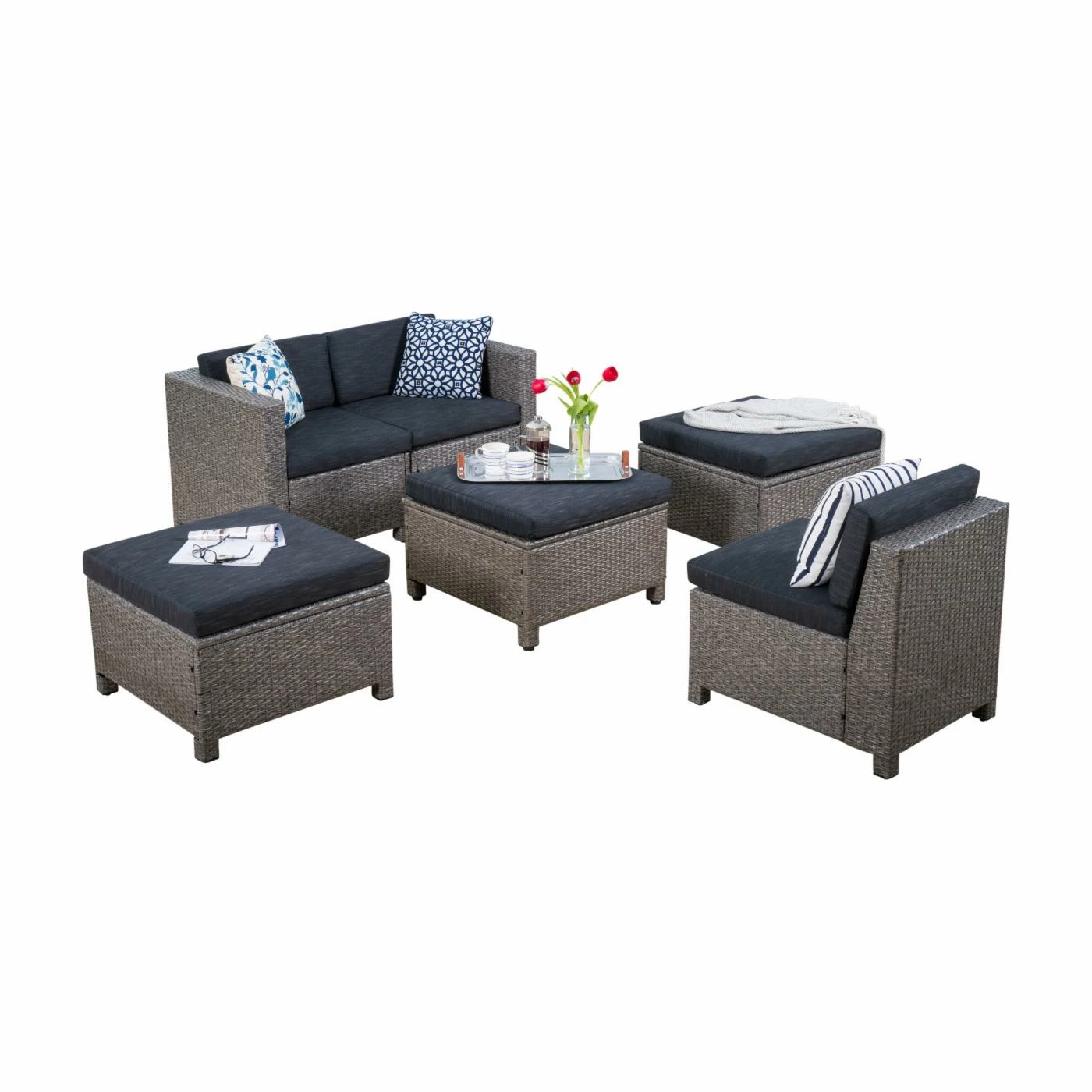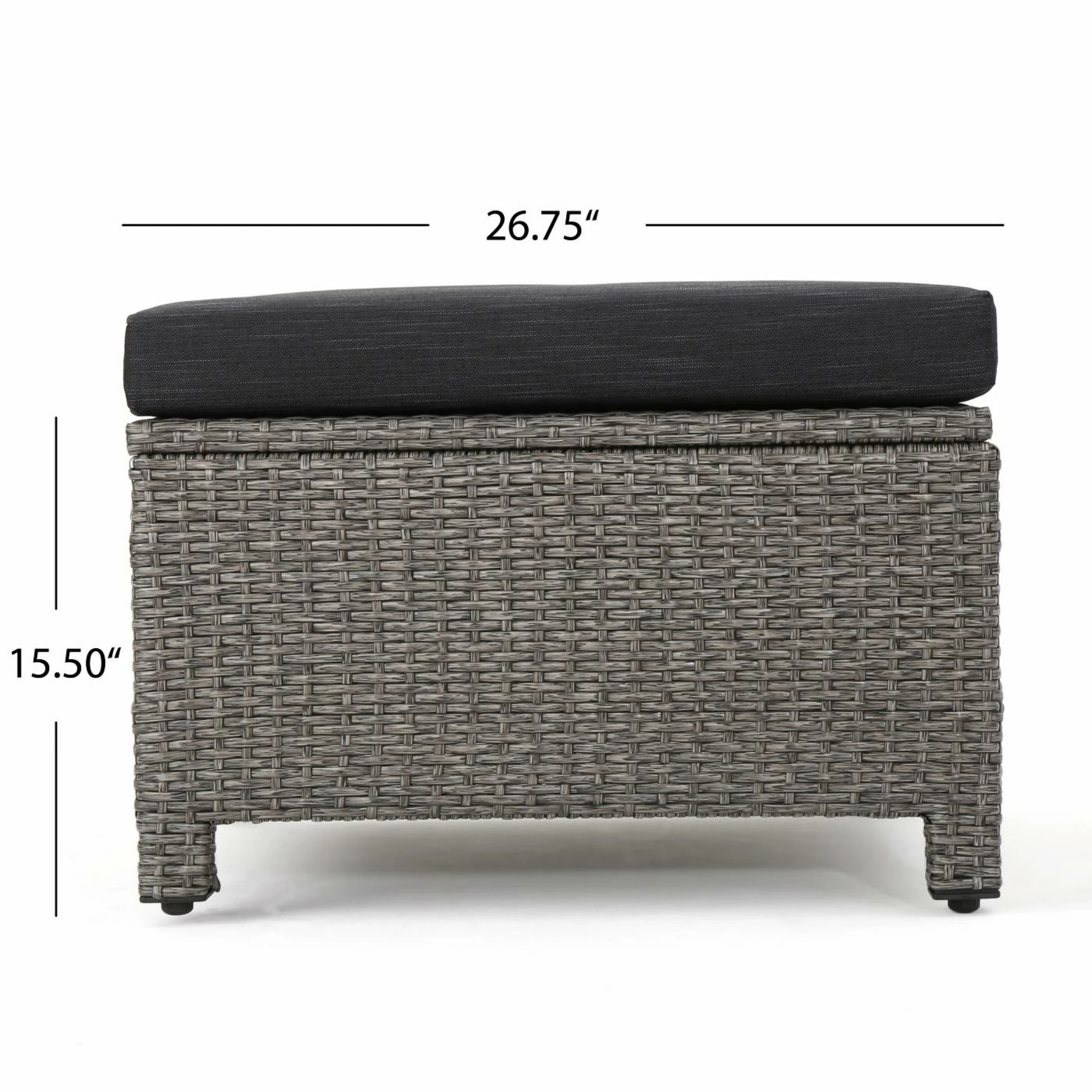 Get ready for some serious lounging on the Puerta Wicker Patio Sofa. This set includes a left-handed and right-handed chair with an armless chair in the middle and three matching ottomans. You could easily spread them out to create a cozy conversation space, or you can put them all together and give yourself a spacious, contemporary daybed. Squared, modern lines are standard, and they have each piece crafted with a frame of powder-coated steel. The steel is fully covered by woven resin wicker, a material that looks and feels like traditional wicker, but offers up the weather-resistance of a synthetic product. The all-weather cushions are covered with dark gray polyester fabric that’s ready for a life outdoors.