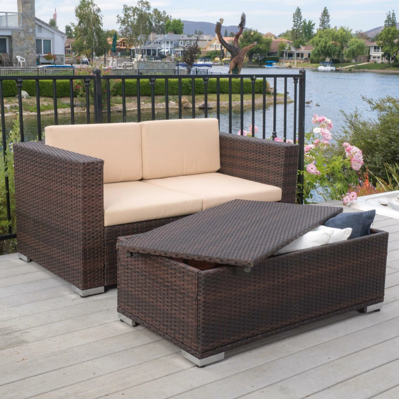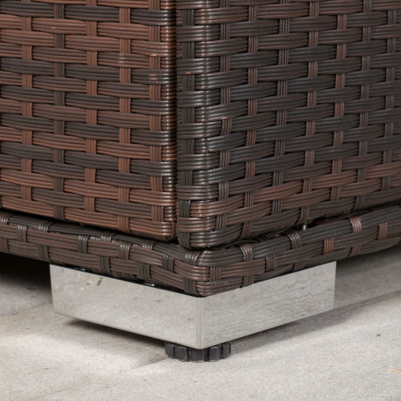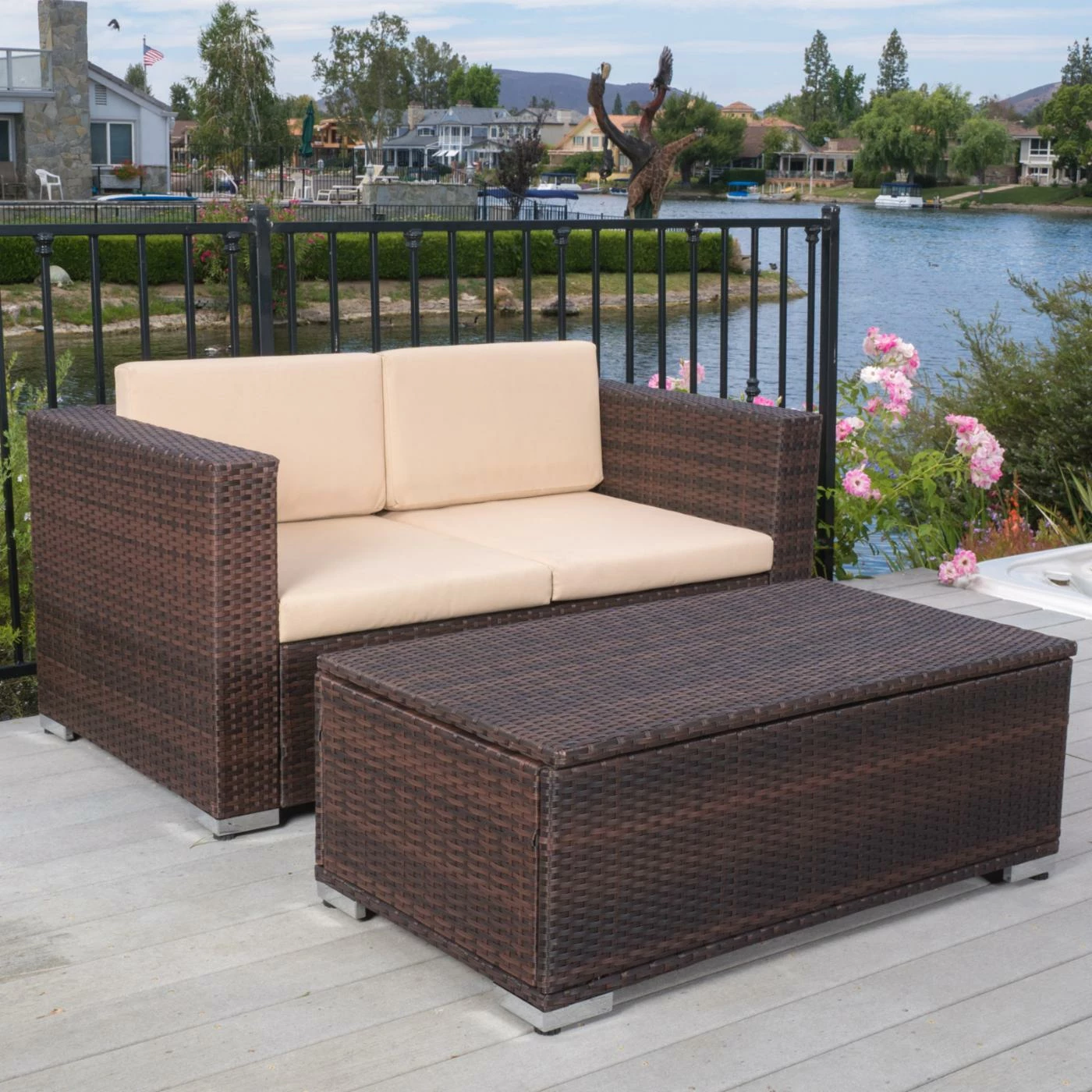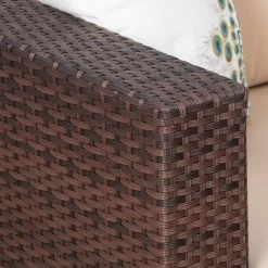 The Seychelles Loveseat and Table Set enhances the look of your deck, patio, or garden thanks to its lovely design. This beautiful set features a comfortable loveseat and a convenient table that gives you added space for seating as well as needed surface space and storage. The cushions are stylish and comfortable, and the brown wicker lends it an elegant touch.