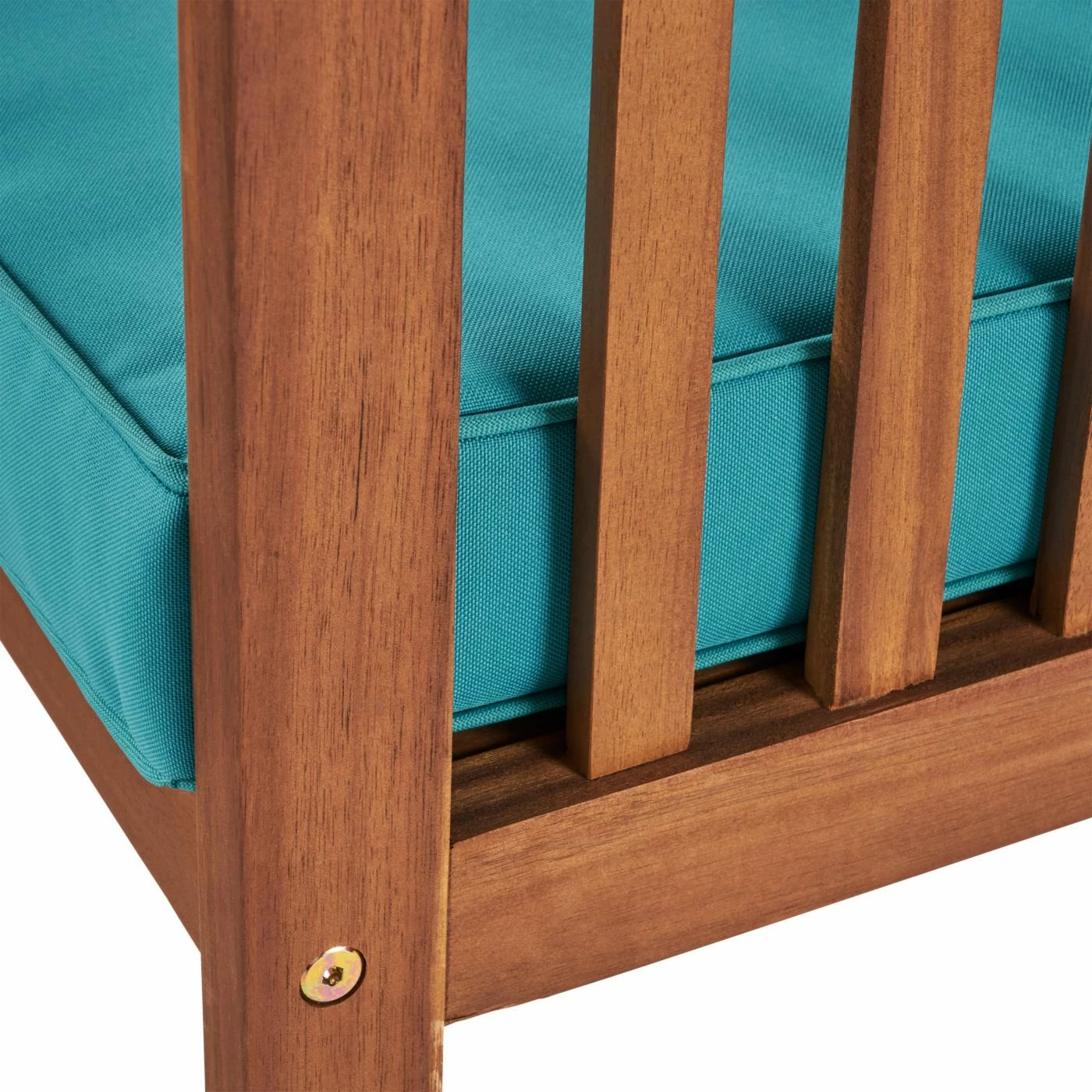 You can form a tight group with the pieces in the Carolina Acacia Wood 8 Piece Patio Conversation Set to create a close, intimate space, or you can spread them out to make a cohesive, elegant oasis on your porch or patio. This set gives you two loveseats, four chairs, and two coffee tables, each built from solid acacia hardwood with a warm, mid-toned finish. The tall, straight slats give this set a classic, Mission-inspired flavor to the set. Water-resistant cushions with dense foam interiors deliver comfort and color to each piece. Please choose from available color options.