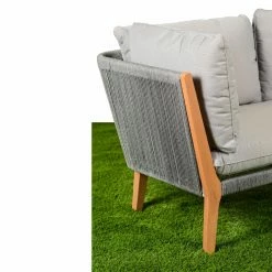 Gray fabric adds a modern touch. Each quick-dry cushion features a removable cover with a zipper. The Olefin covers are mildew and UV resistant, making this conversation set durable enough for the outdoors.