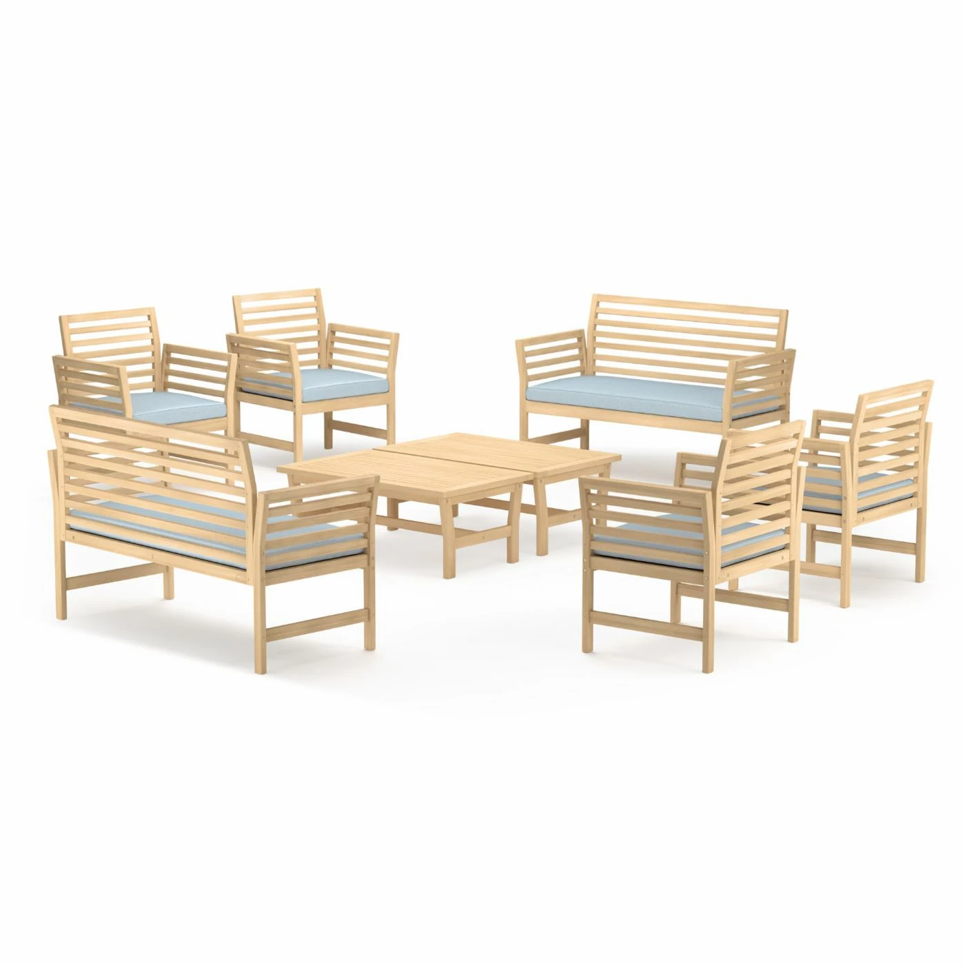 Your outdoor oasis will always be prepared to seat up to eight people with the elegant and durable RTS Brands Yuri 8 Piece Patio Conversation Set. The options for your social life will be endless. Thoughtfully designed with calming rows of supportive eucalyptus that is frankly stunning, not to mention weather resistant. Each piece is just the right size for arranging them however you want.