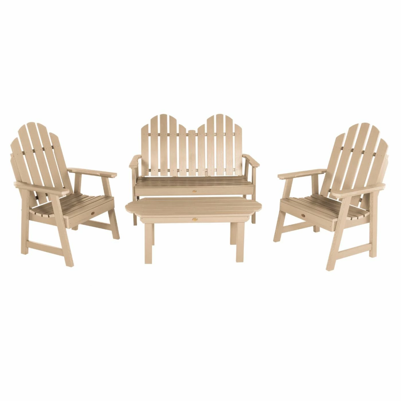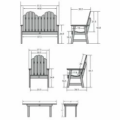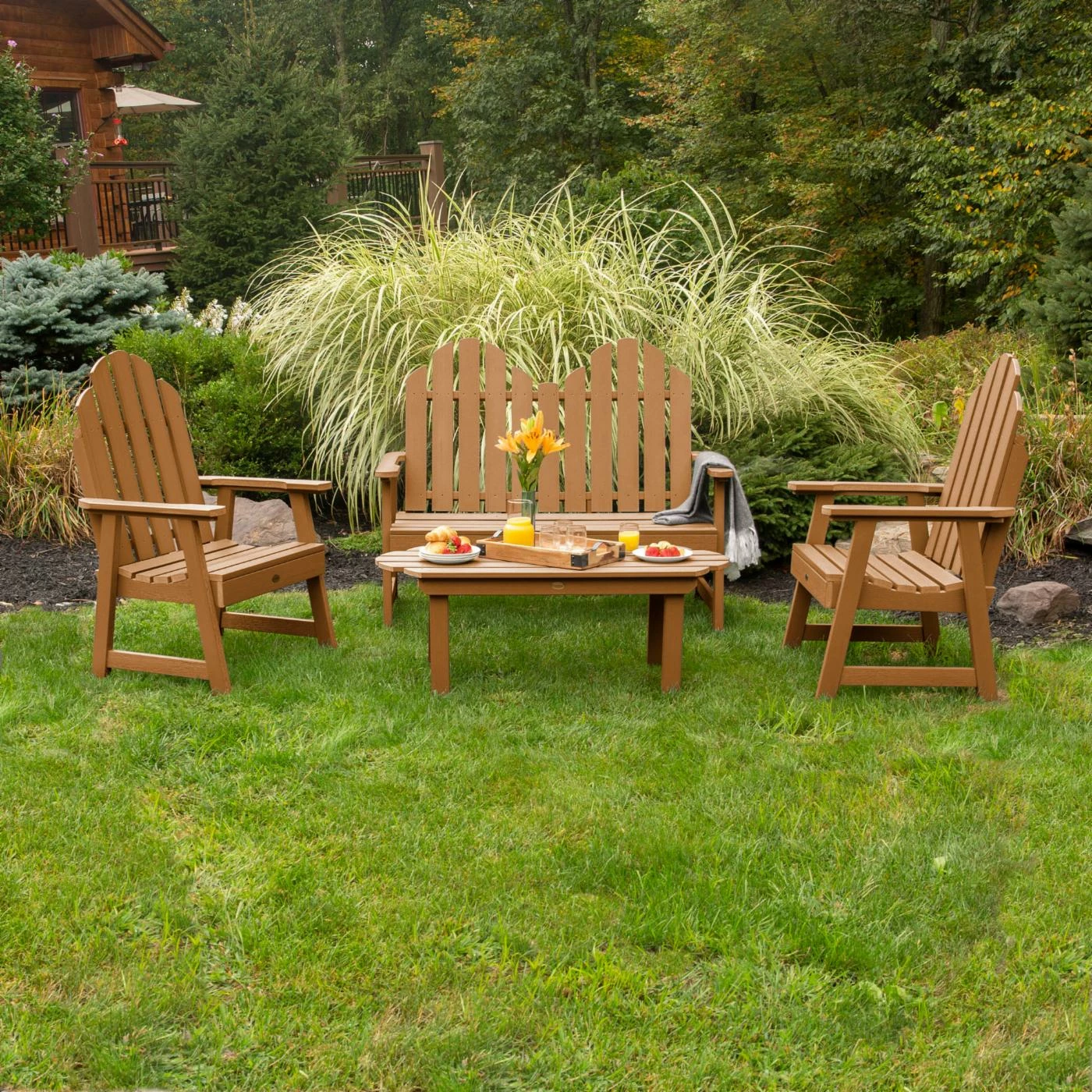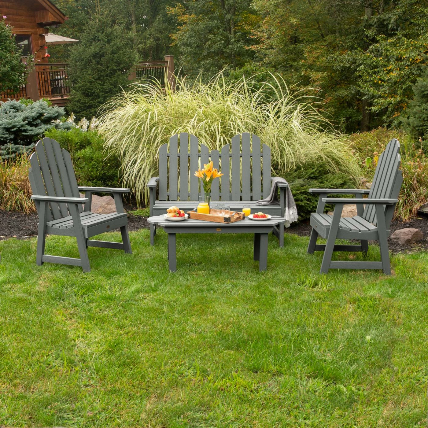 The Highwood USA Classic Westport Poly Lumber 4 Piece Garden Patio Conversation Set showcases a style that reminds you of lighthouses and coastal towns. The durable, fade resistant bench and garden chairs are the perfect assimilation of comfort and style. The generous tabletop allows you to keep all of your necessities within armโs reach. Made of weather resistant poly lumber in your choice of colors, the set is durable enough to last for years. Throw in your favorite decorative pillows, candles, and a cozy blanket for an evening gazing at the stars. Set contains 1 Westport 4ft Garden Bench, 2 Westport Garden Chairs, and 1 Westport Conversation Table.