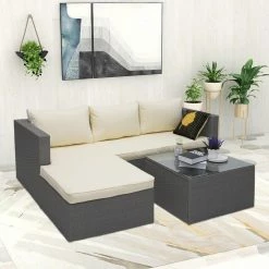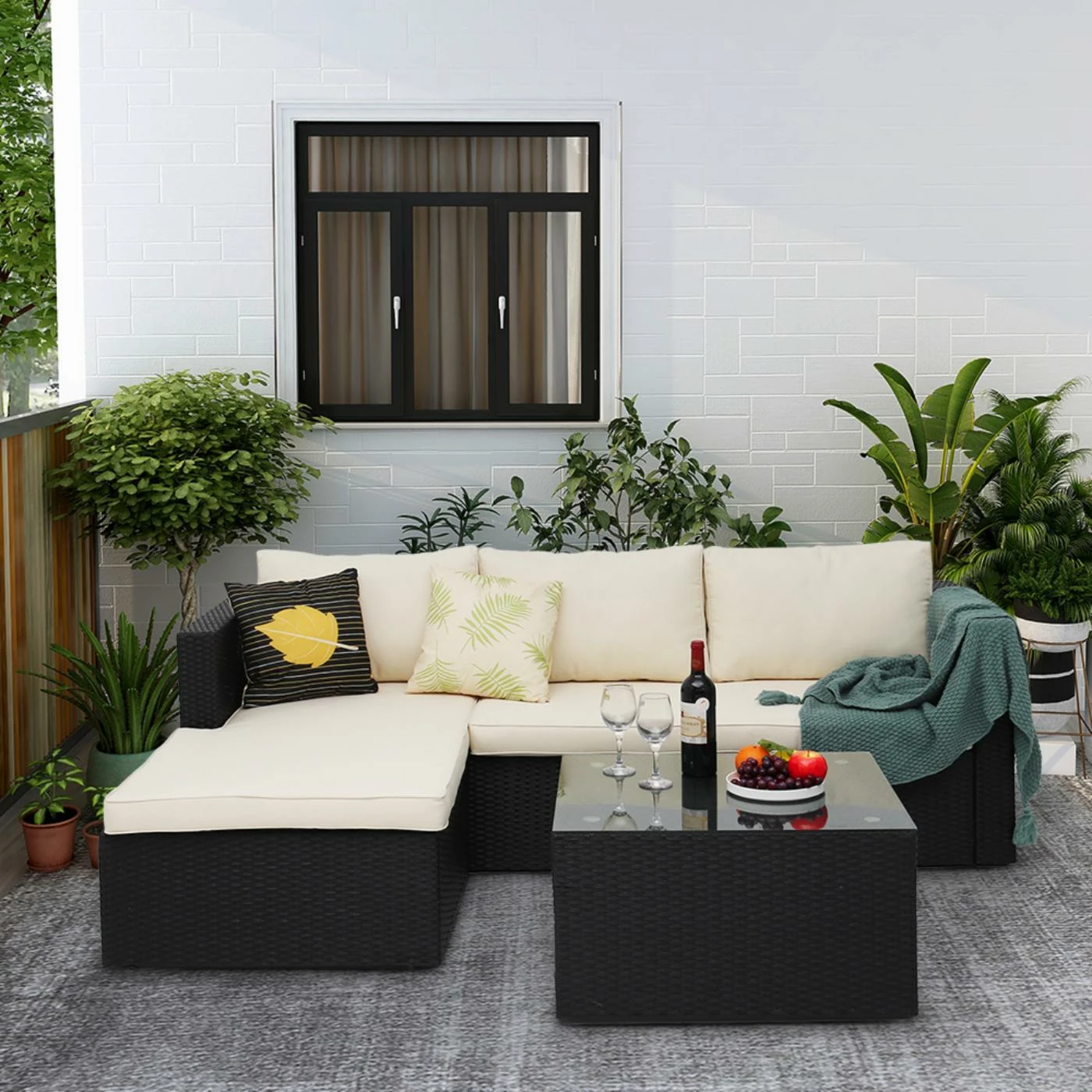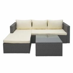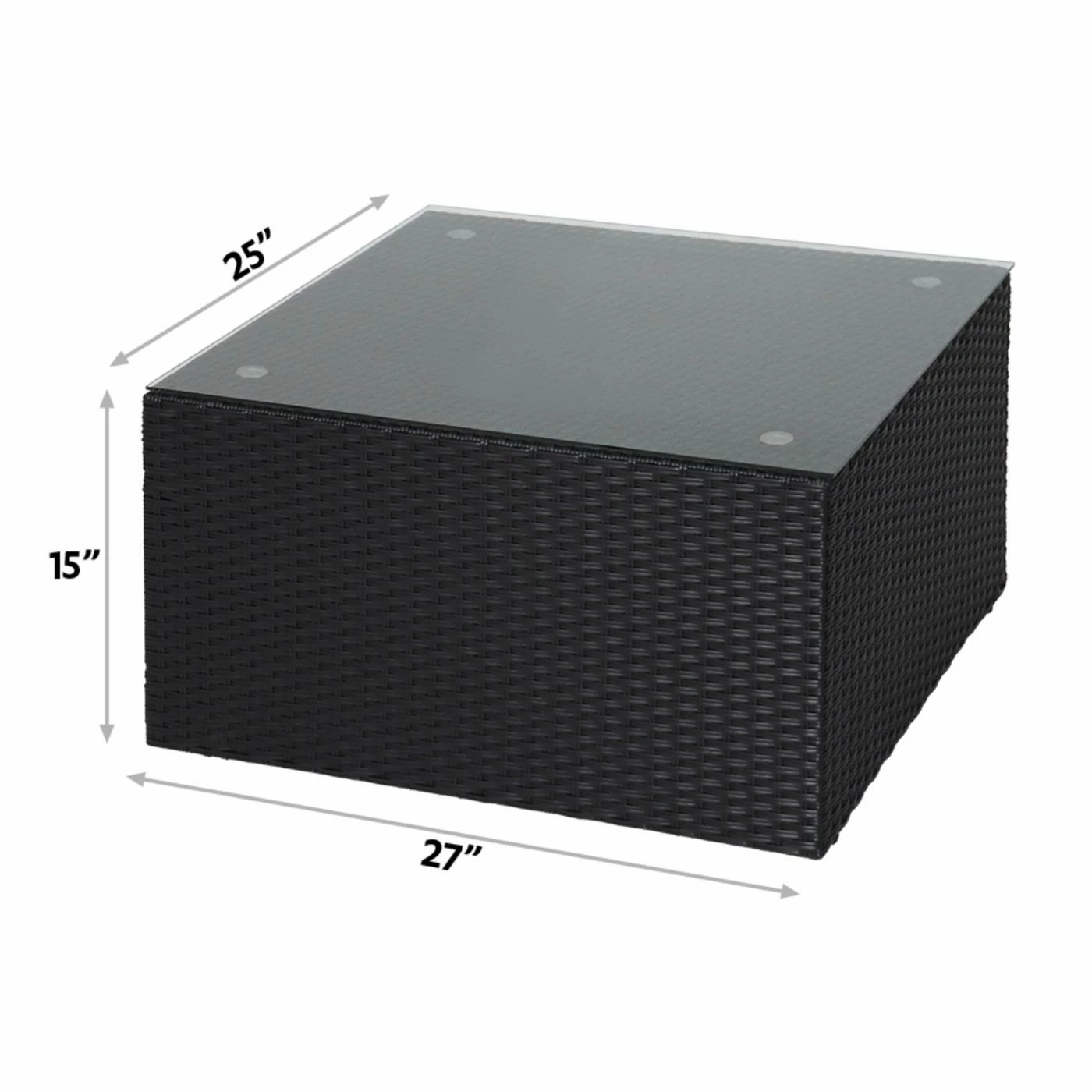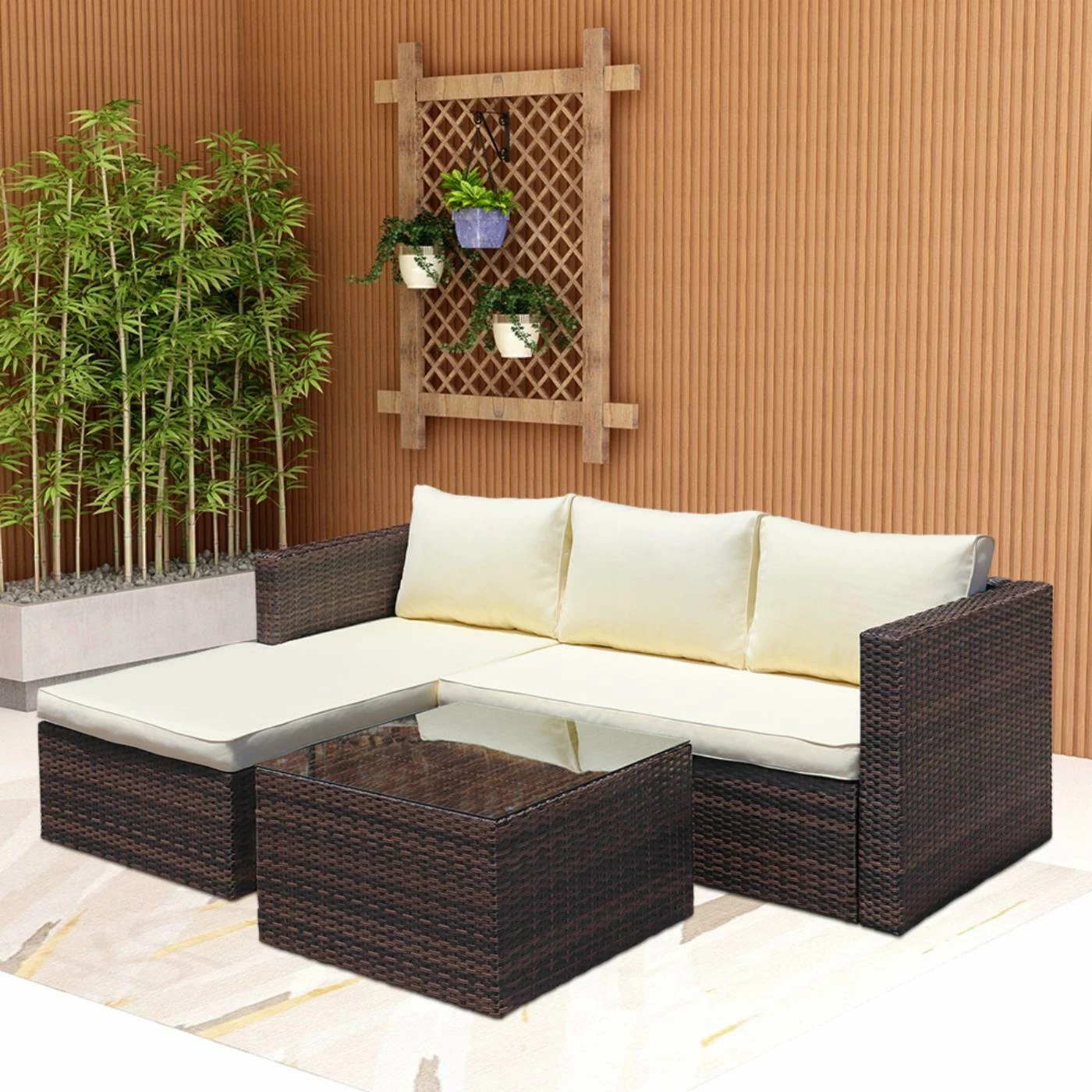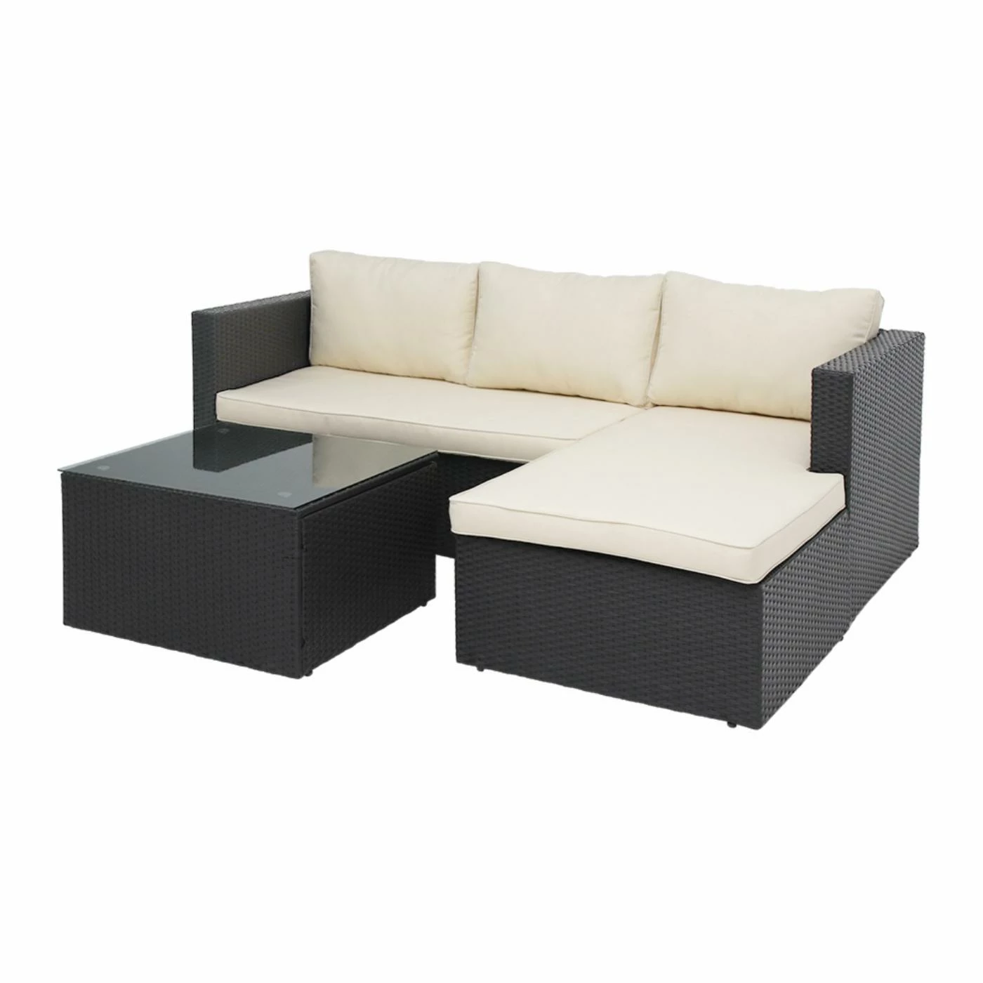 This sectional seating group includes a 3-seater sofa with chaise and a tempered glass top coffee table which can be moved to either left or right to fit in your space. It helps make the outside of your home just as inviting as the inside.