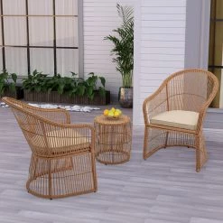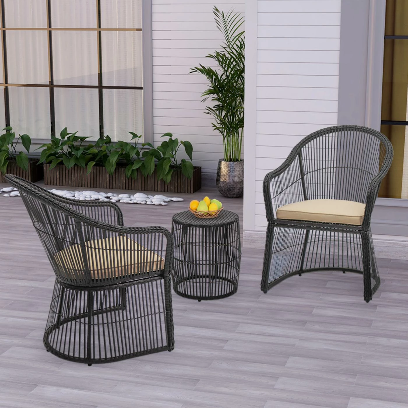 Sit back and enjoy your outdoor scene with this 3-piece patio seating set. It includes two wingback chairs and a table. This furniture is crafted with a weather-resistant wicker body, so you can enjoy it for seasons to come.