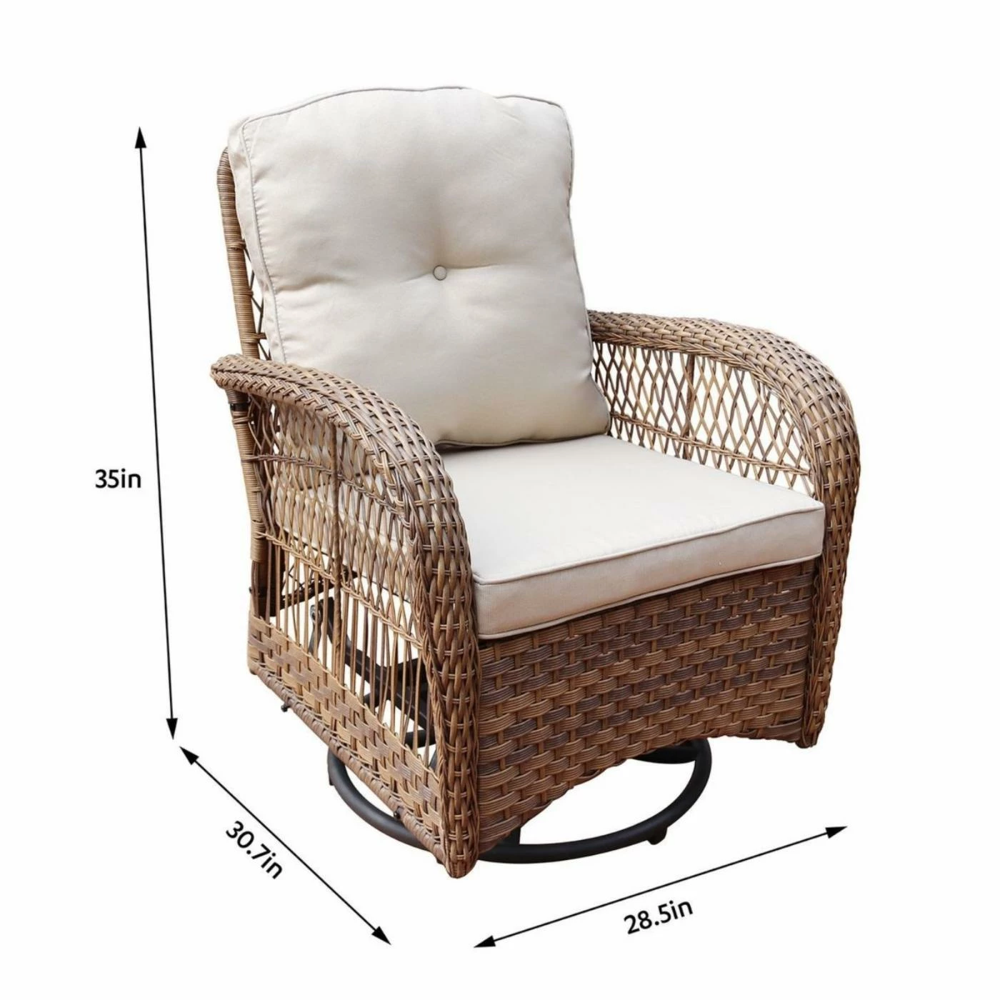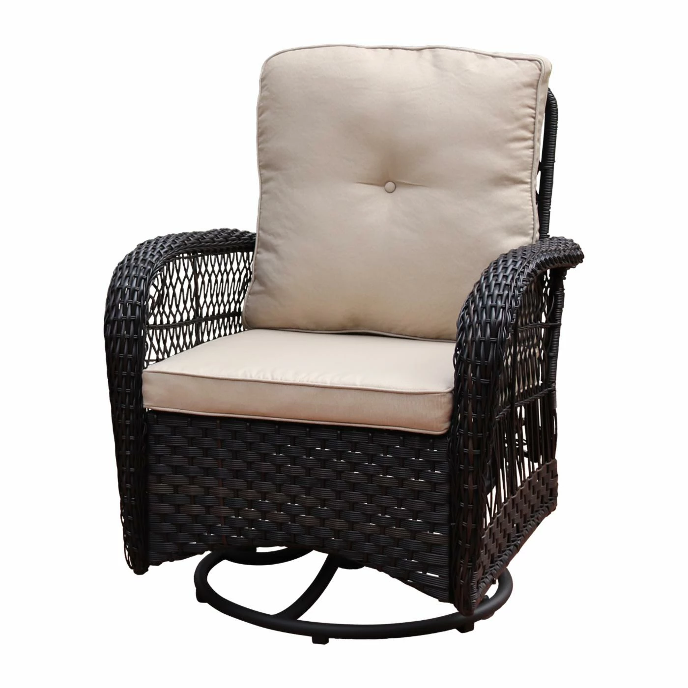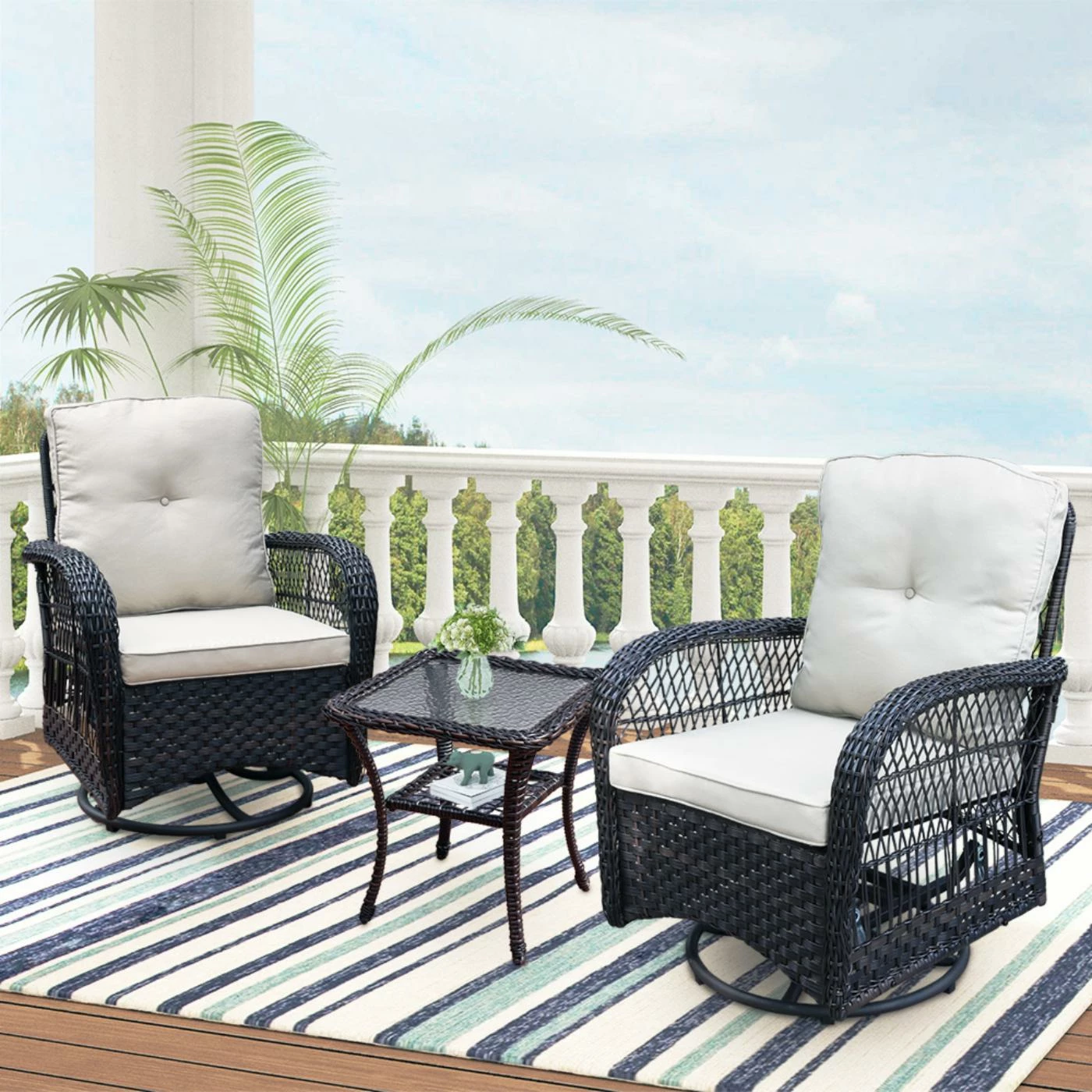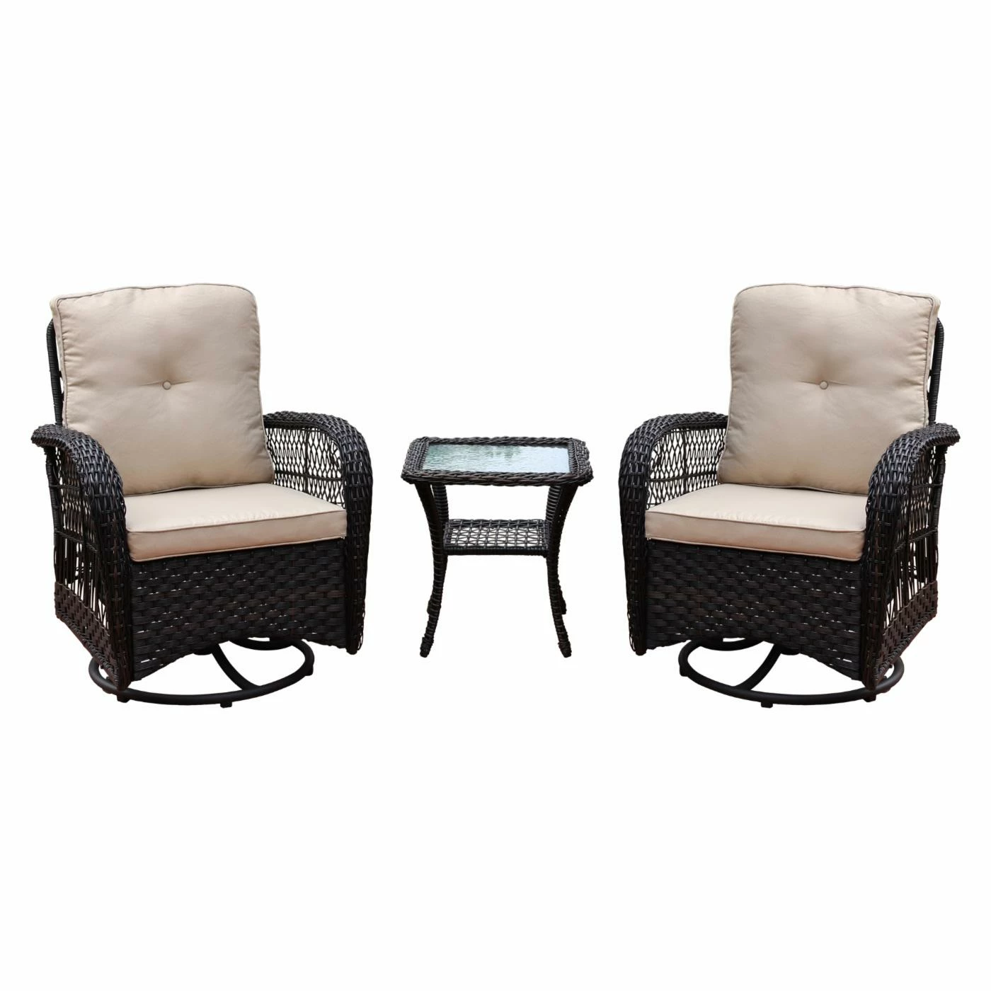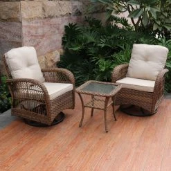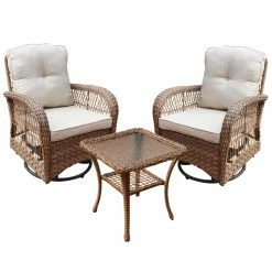 This Melendy Swivel Conversation 3 Piece Wicker Conversation set has comfort, functionality, and durability. The chair is set on a swivel and the side table ensures that you will have a place to rest everything you need.