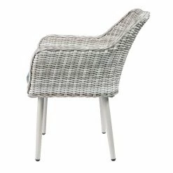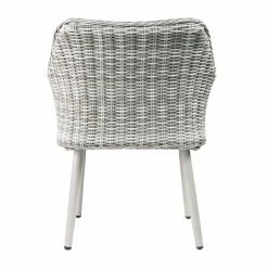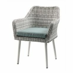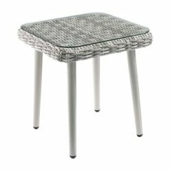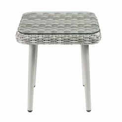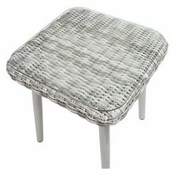 The wicker-like texture of the Acme Furniture Tashay Wicker 3 Piece Patio Chat Set in Green Fabric and Beige Wicker is certainly classic but the shape is inspired by vintage-modern design. This set includes two chairs with a matching side table. The table and each of the chairs features an internal frame and slender legs of powder-coated aluminum. The long legs support contoured seats that are wrapped with resin wicker. This synthetic material offers the texture and multi-tone beige finish that you’d expect from natural wicker, but offers superior resistance to rot, cracking, and UV-related fading. Between the chairs is a matching table that’s topped with a sheet of clear, tempered glass. The seats provide the comfort of foam-filled cushions with polyester fabric covers in a pleasant, contrasting shade of sea green.