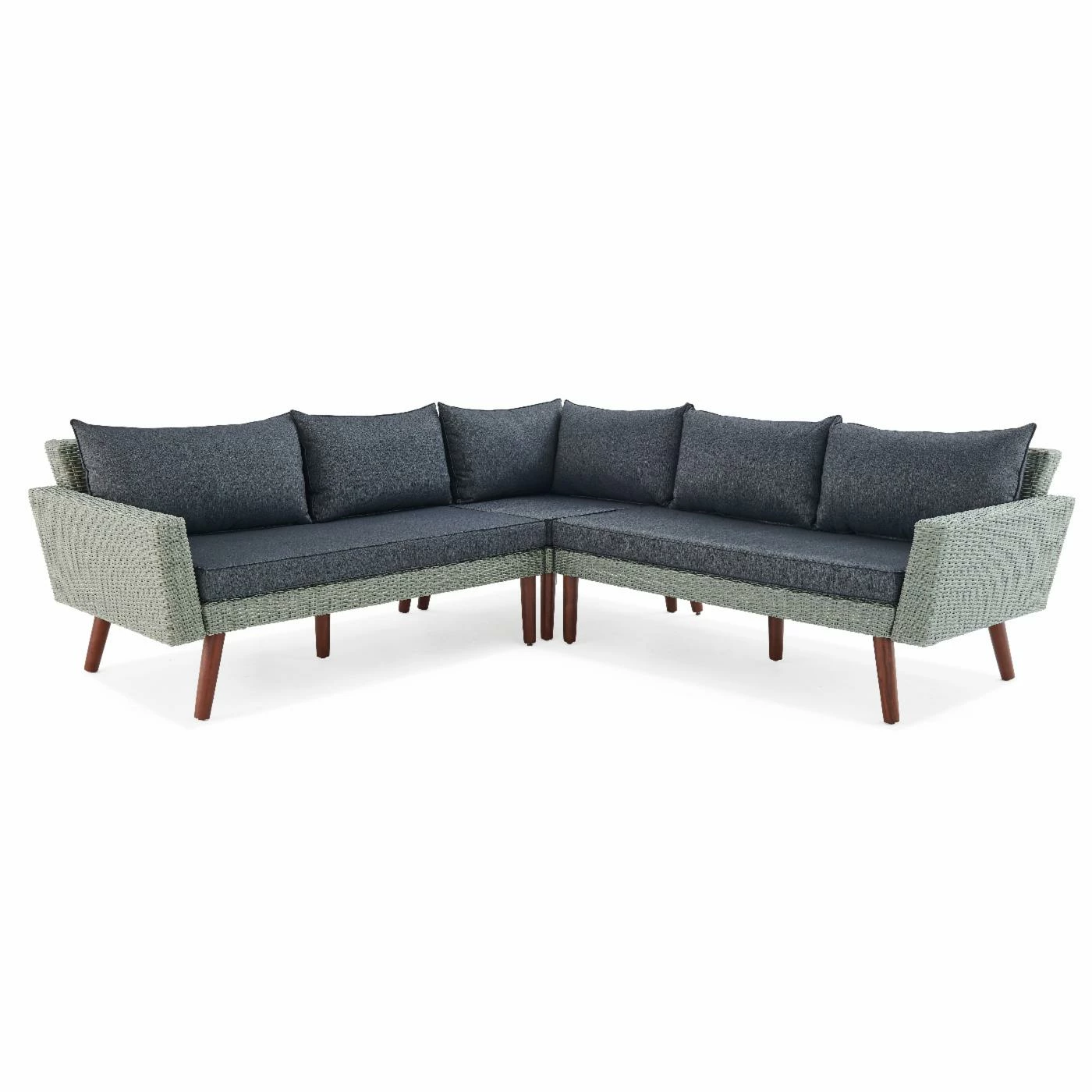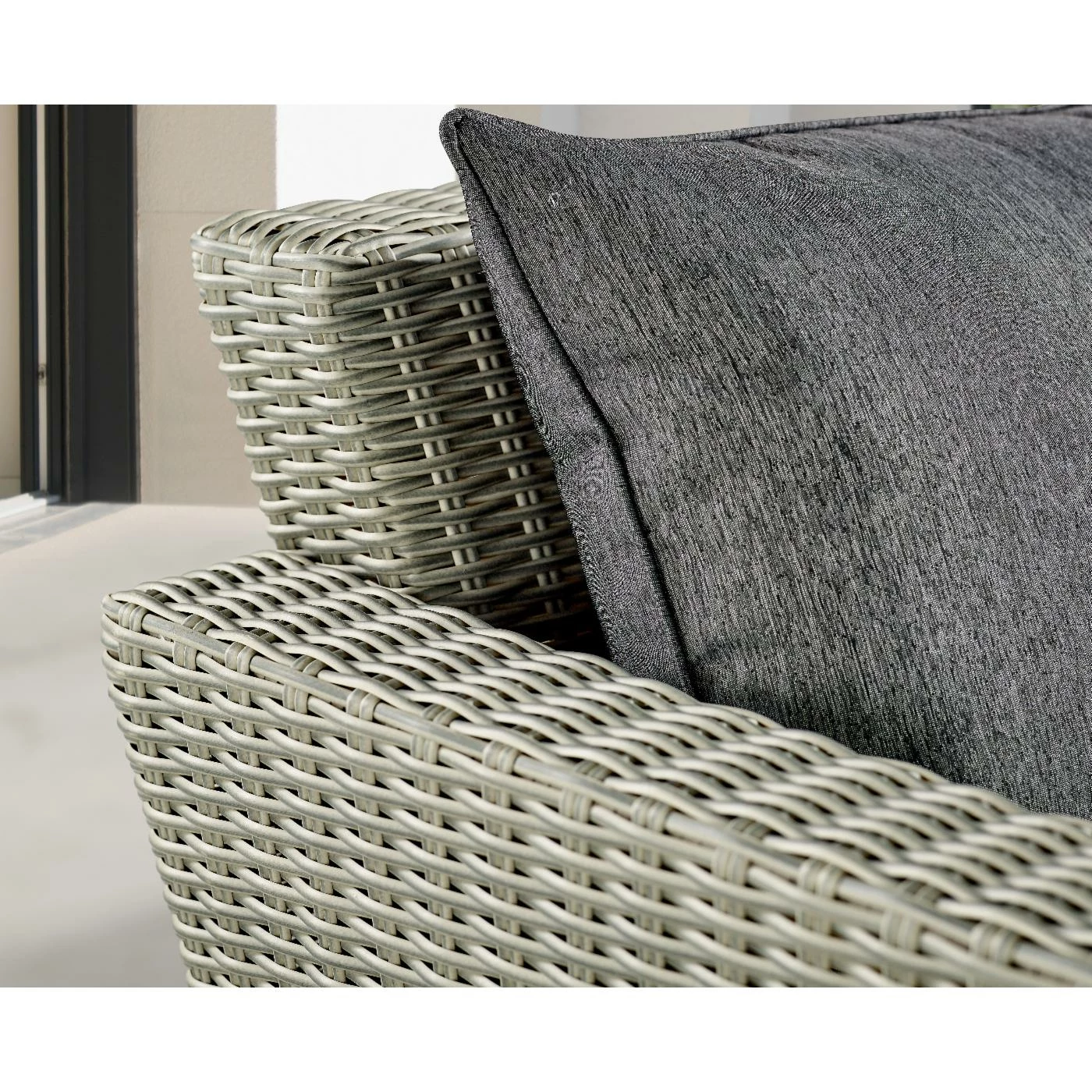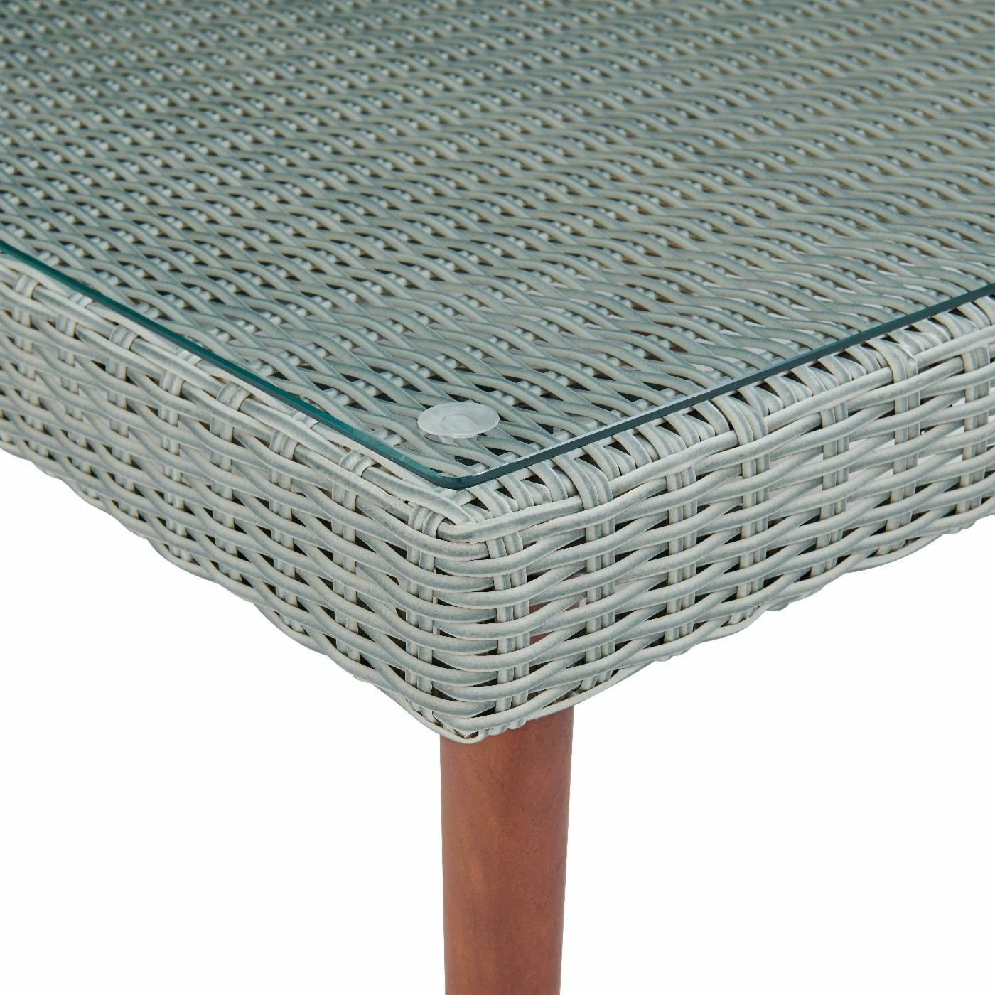 Modern Light Gray All-Weather Wicker Outdoor collection features mixed materials for a stylish update to your patio or deck. Square arms and mid-century wooden legs add modern flair.