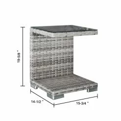 - Side table: 14.5L x 15.75W x 19.63H in.