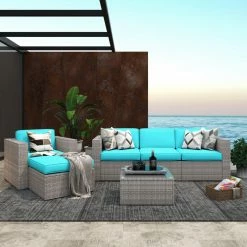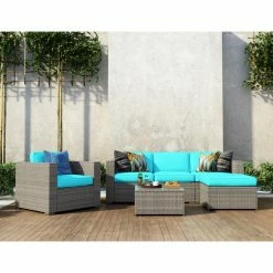 Upgrade your outdoor patio or garden area with lavish comfort and the sleek styling of the Collection. This Cloud Mountain Modern Sectional 6 Piece Resin Wicker Patio Conversation Set would upgrade and style your garden or backyard arrangement. The fashionable modern rattan design complements any space and the durable construction will make this piece a favorite of yours for summers to come. This luxurious set will create a beautiful and relaxing outdoor living space for you and your guests.